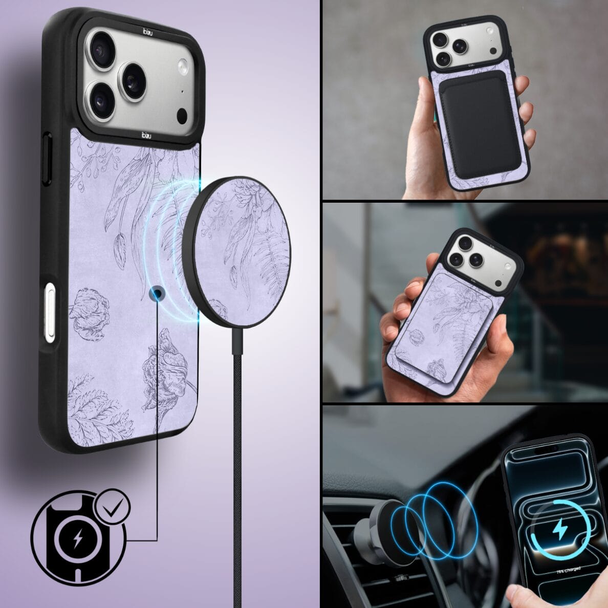 Etui do iPhone 17 Pro IBIZU DropGuard Matt z MagSafe, Relief Garden, Kwiatowa płaskorzeźba