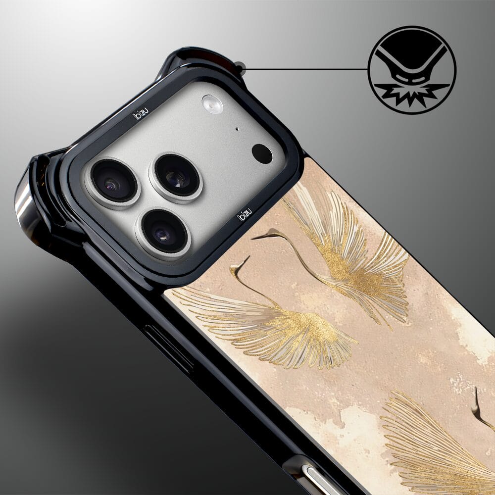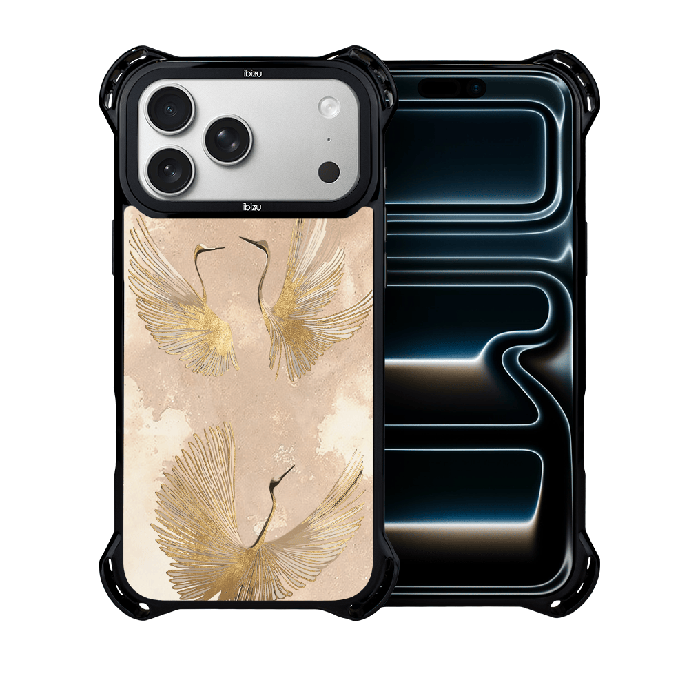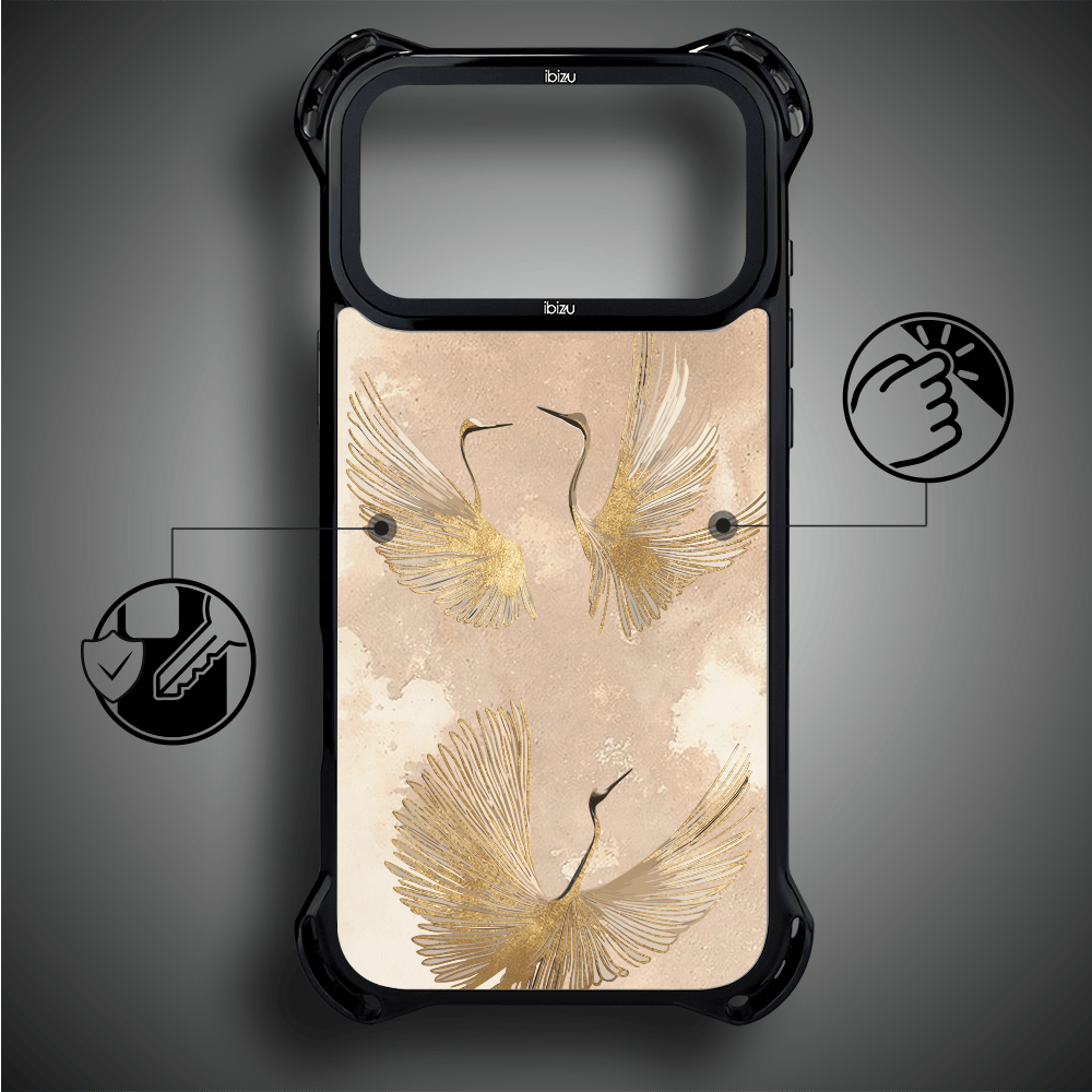 Etui do iPhone 17 Pro IBIZU DropGuard Ultra z MagSafe, Boho, Złote żurawie