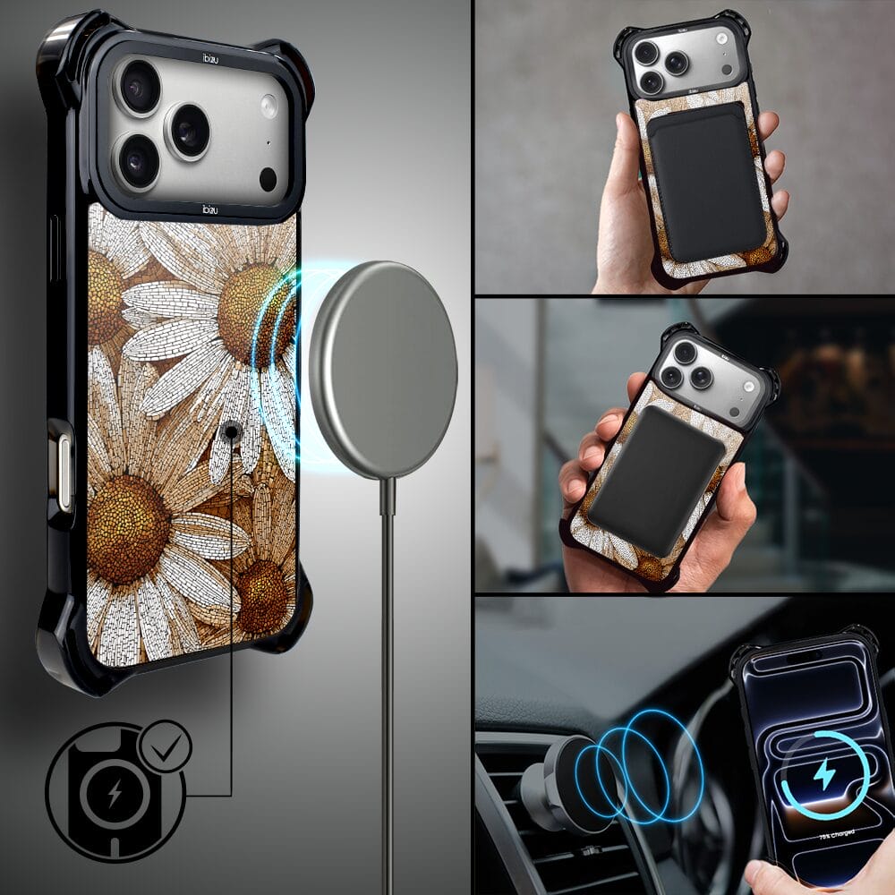 Etui do iPhone 17 Pro IBIZU DropGuard Ultra z MagSafe, Modern Classics, Mozaika Rumianków
