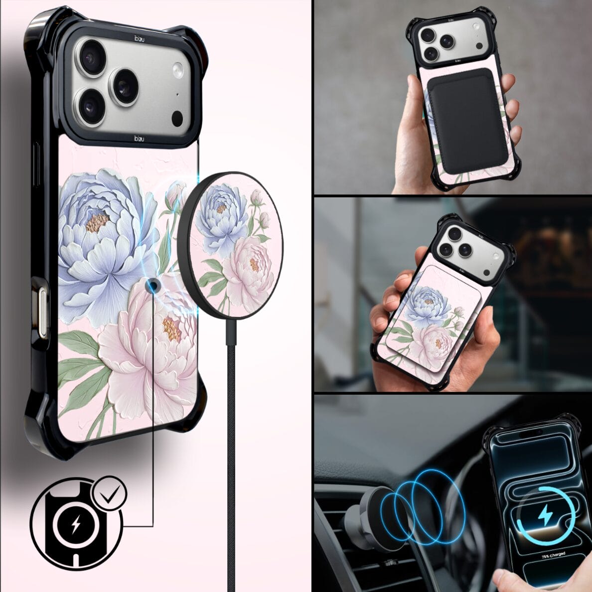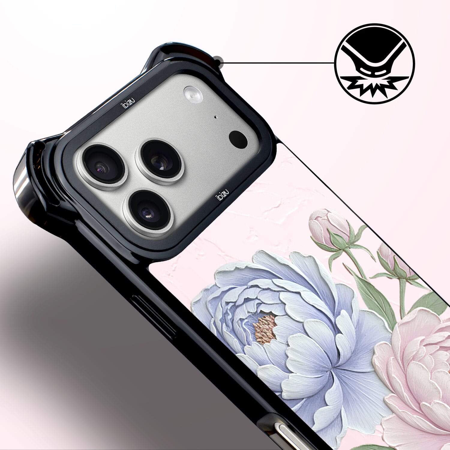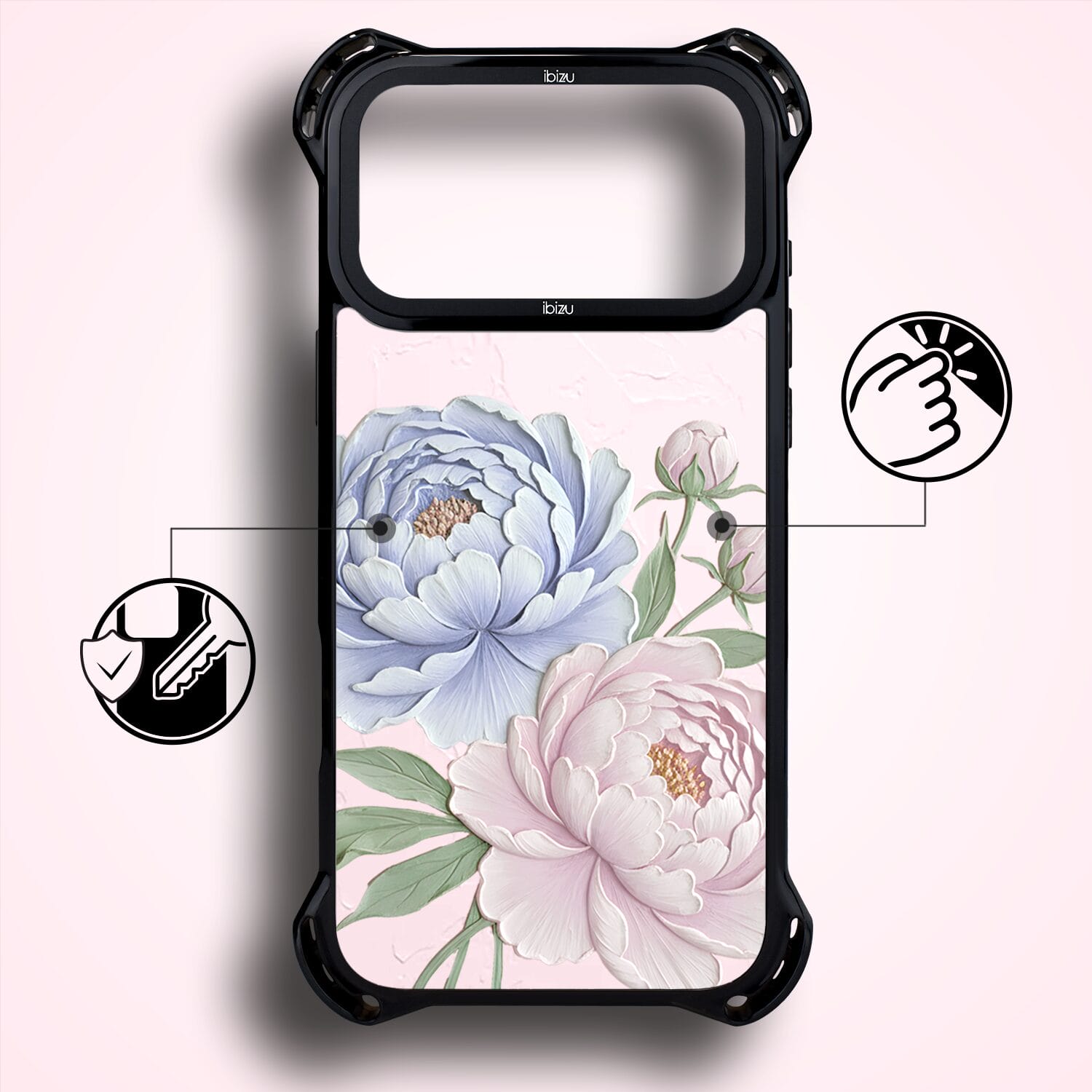 Etui do iPhone 17 Pro IBIZU DropGuard Ultra z MagSafe, Relief Garden, Piwoniowy róż