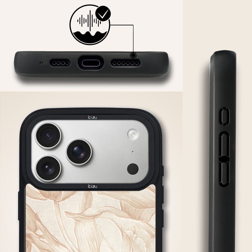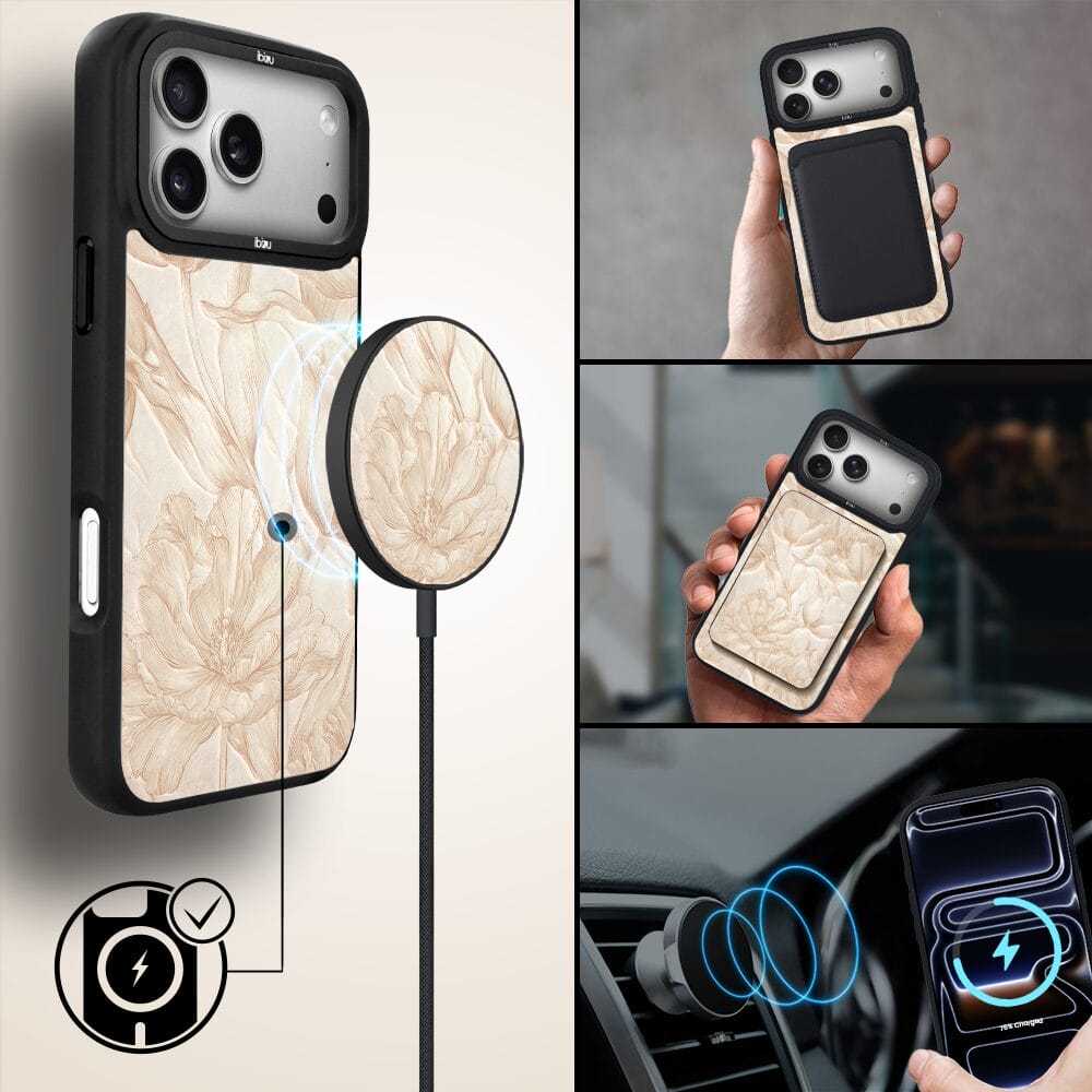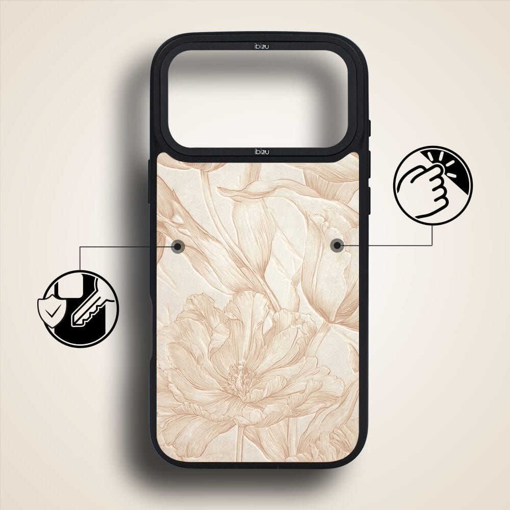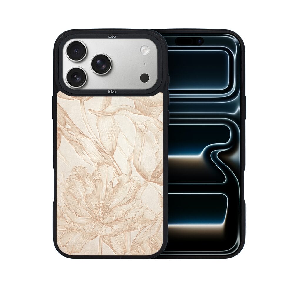 Etui do iPhone 17 Pro Max IBIZU DropGuard Matt z MagSafe, Relief Garden, Botaniczny biskwit
