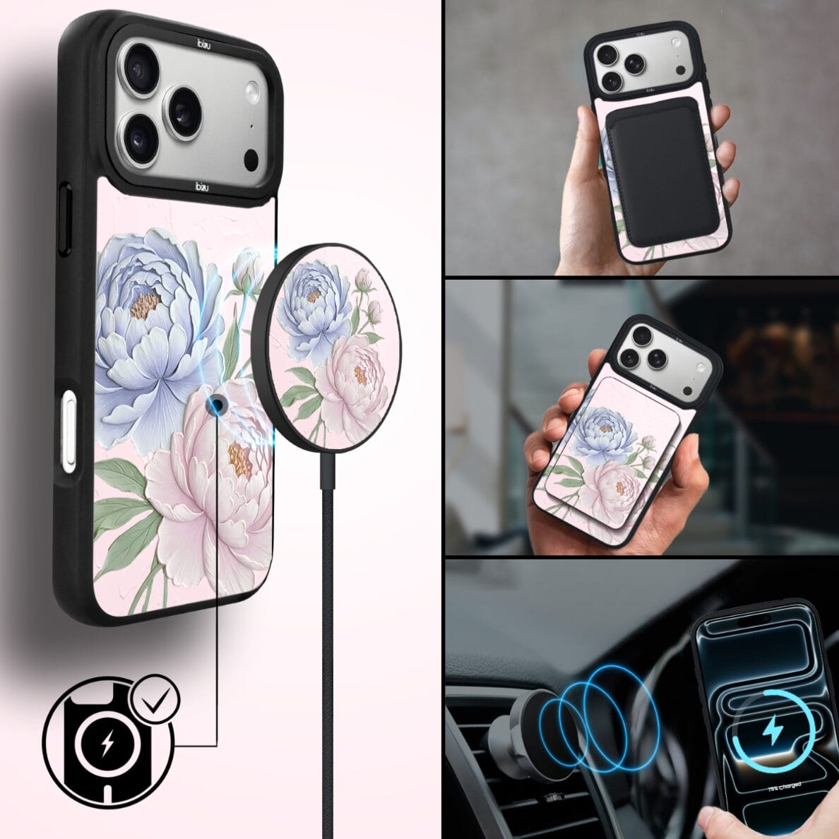 Etui do iPhone 17 Pro Max IBIZU DropGuard Matt z MagSafe, Relief Garden, Piwoniowy róż