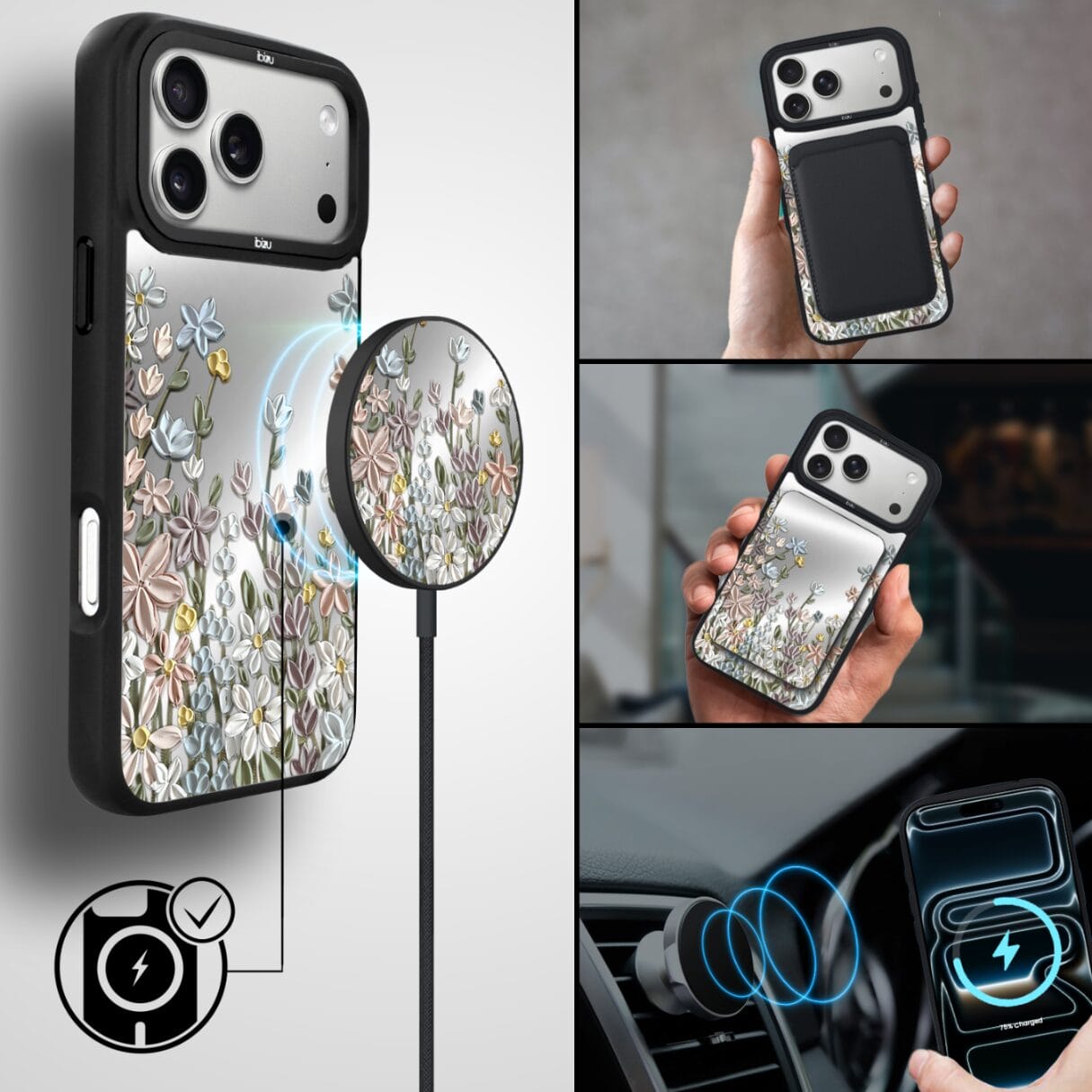 Etui do iPhone 17 Pro Max IBIZU DropGuard Matt z MagSafe, Relief Garden, Wiosenna łąka