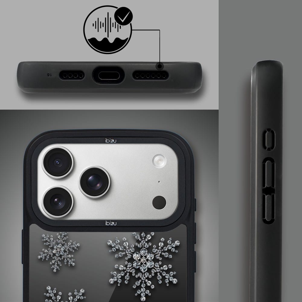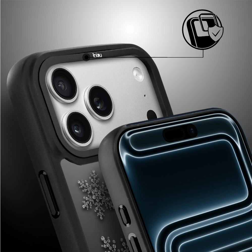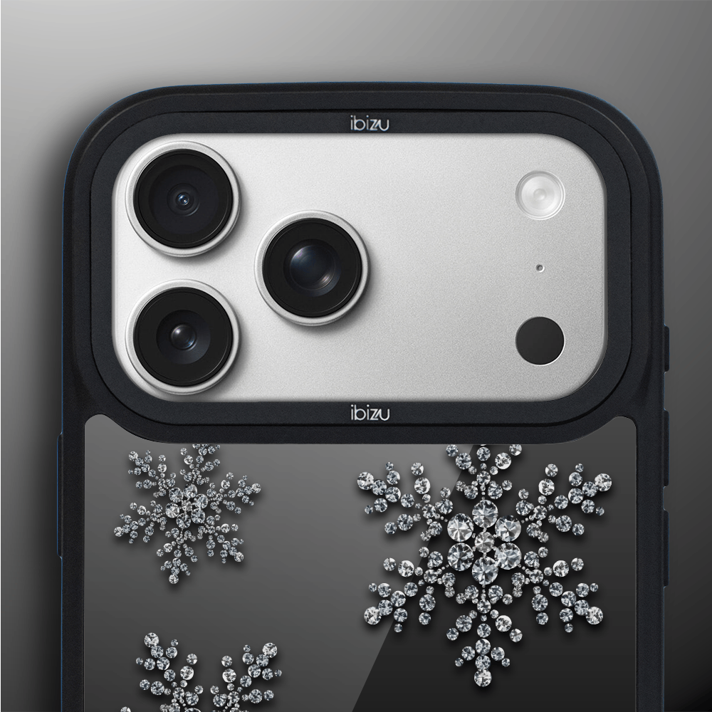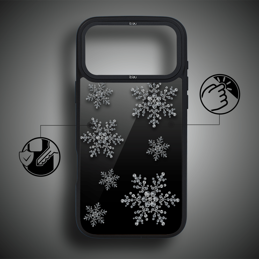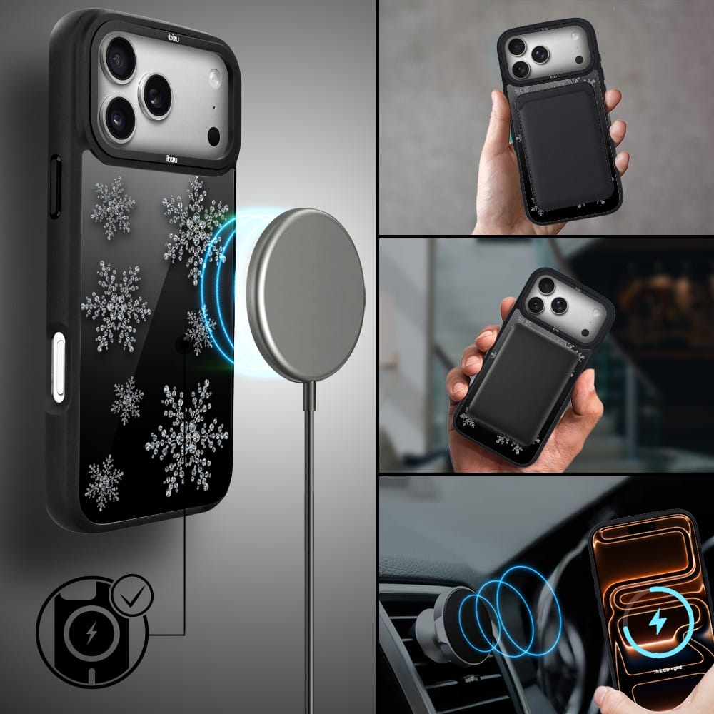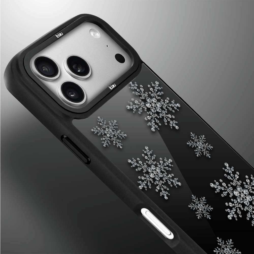 Etui do iPhone 17 Pro Max IBIZU DropGuard Matt z MagSafe, Zimowa magia, Płatki śniegu na czarnym lustrze