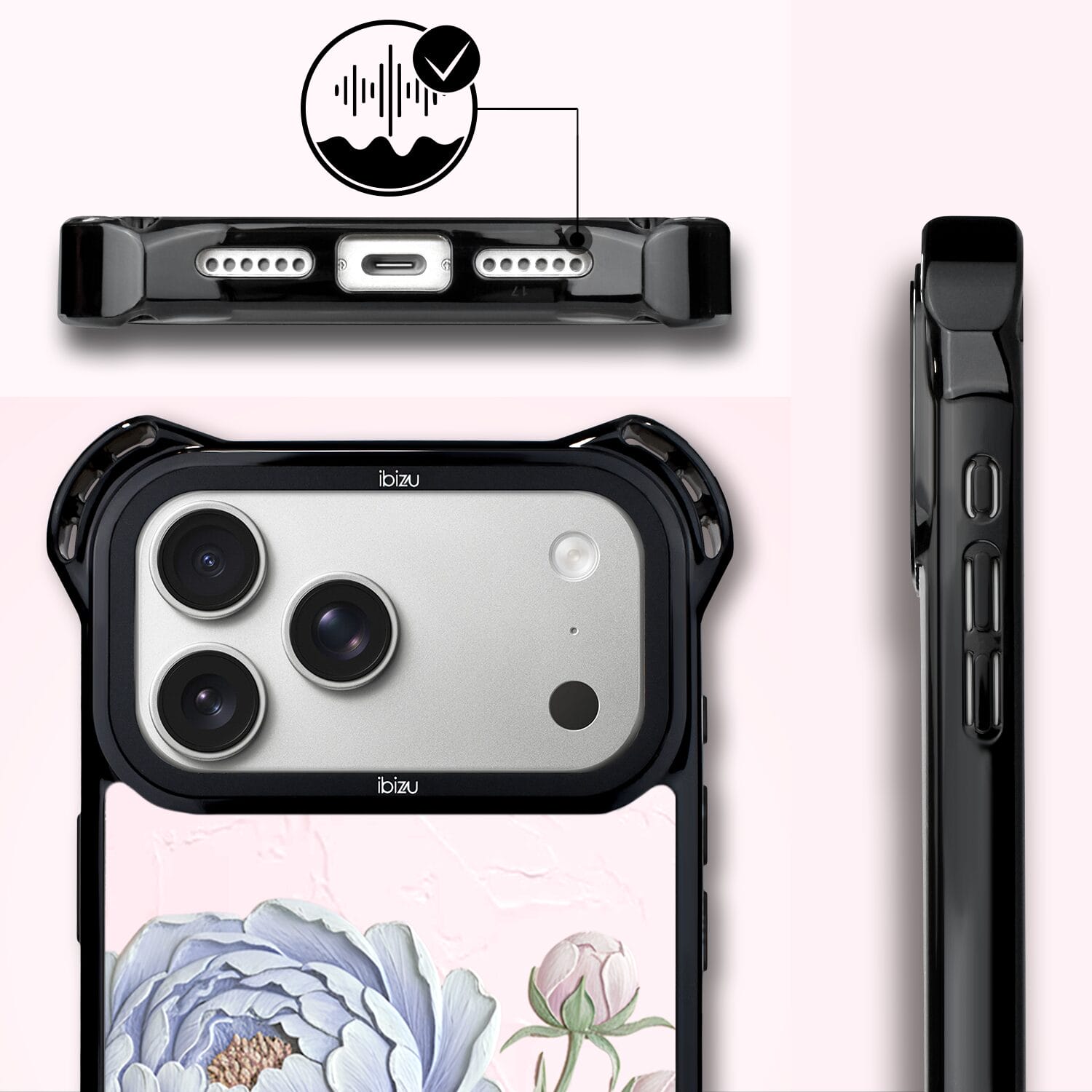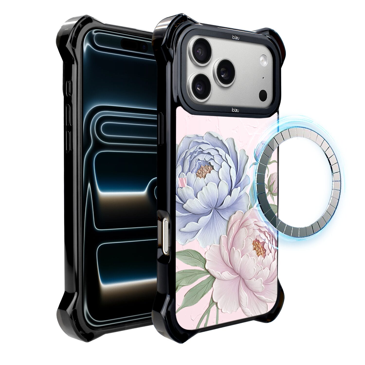 Etui do iPhone 17 Pro Max IBIZU DropGuard Ultra z MagSafe, Relief Garden, Piwoniowy róż
