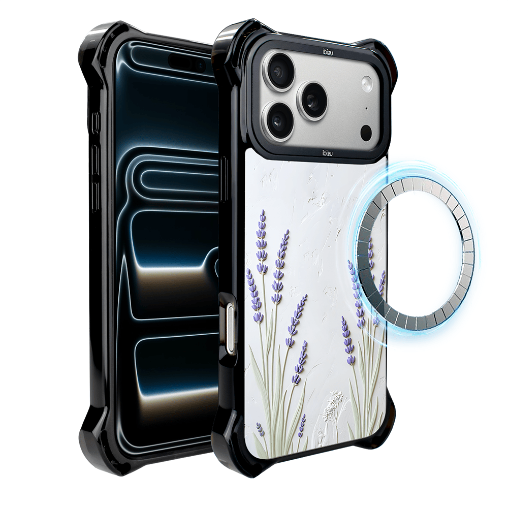 Etui do iPhone 17 Pro Max IBIZU DropGuard Ultra z MagSafe, Relief Garden, Prowansalska lawenda