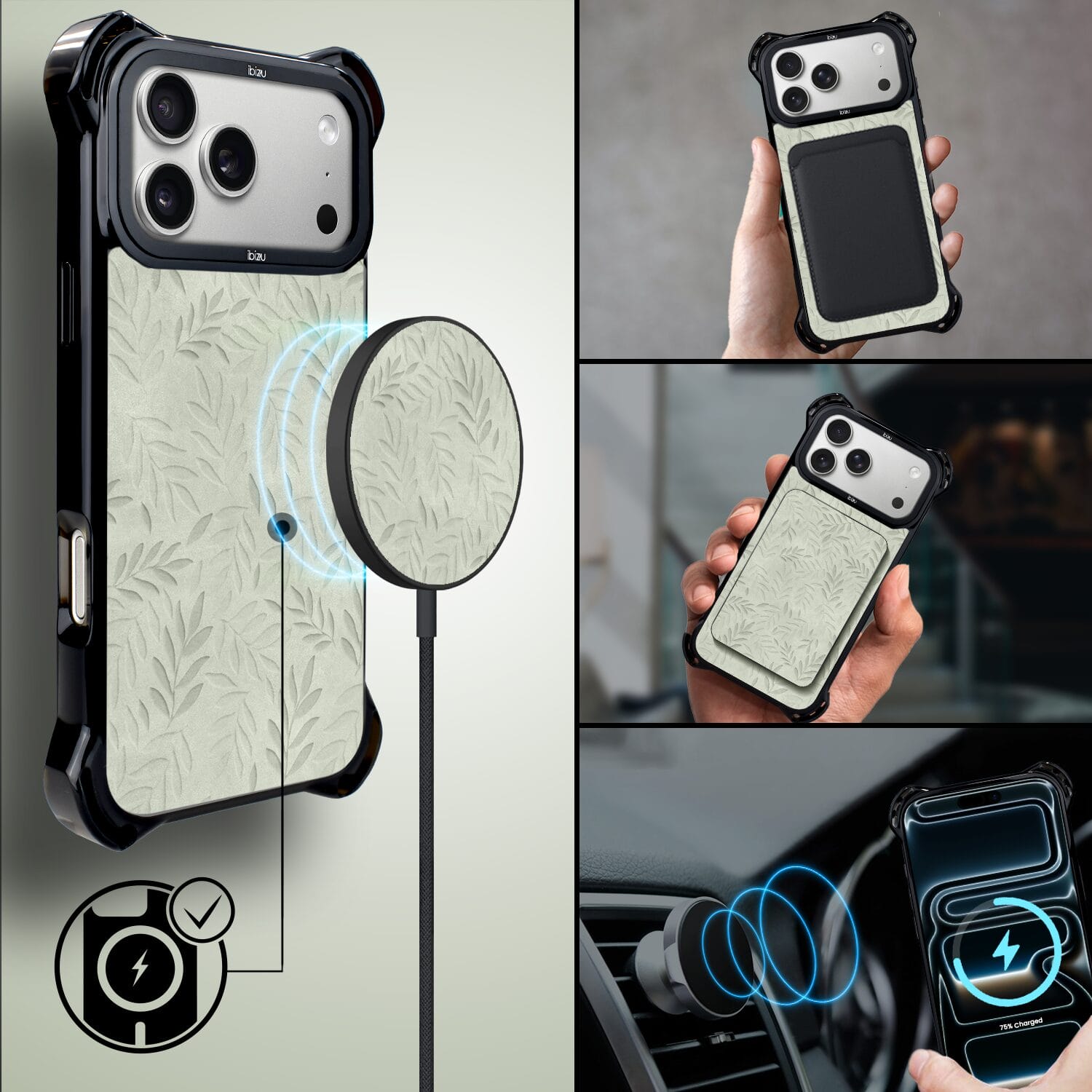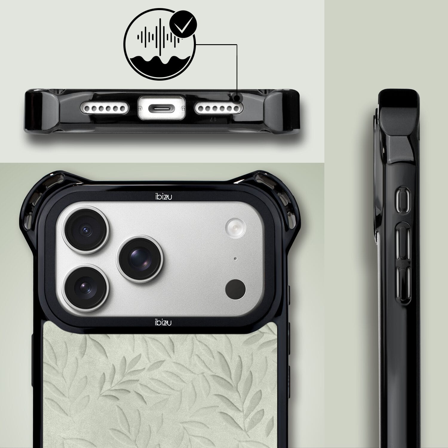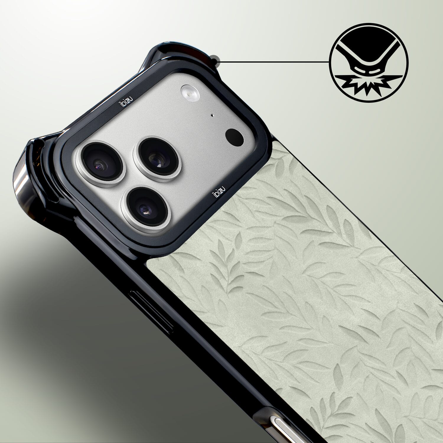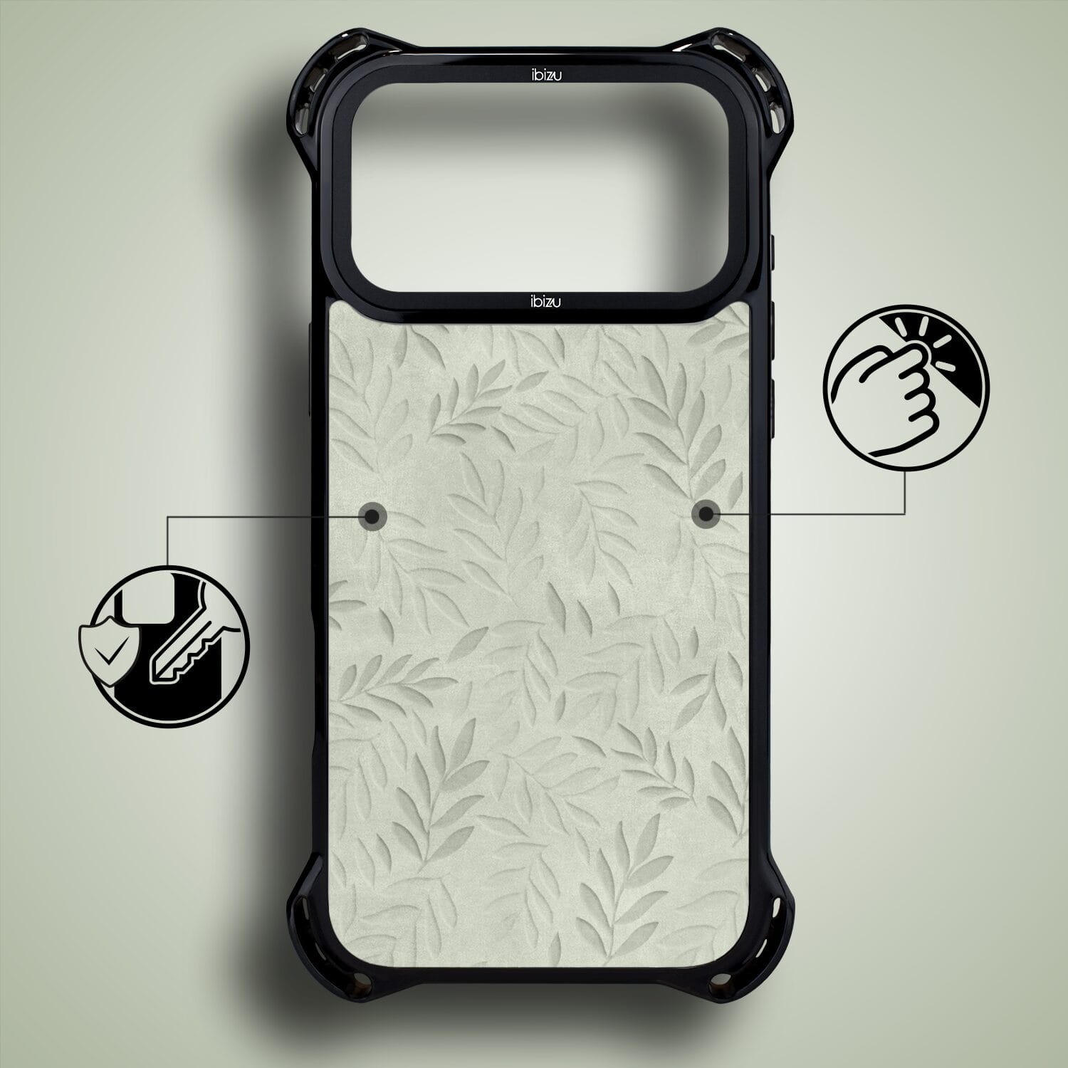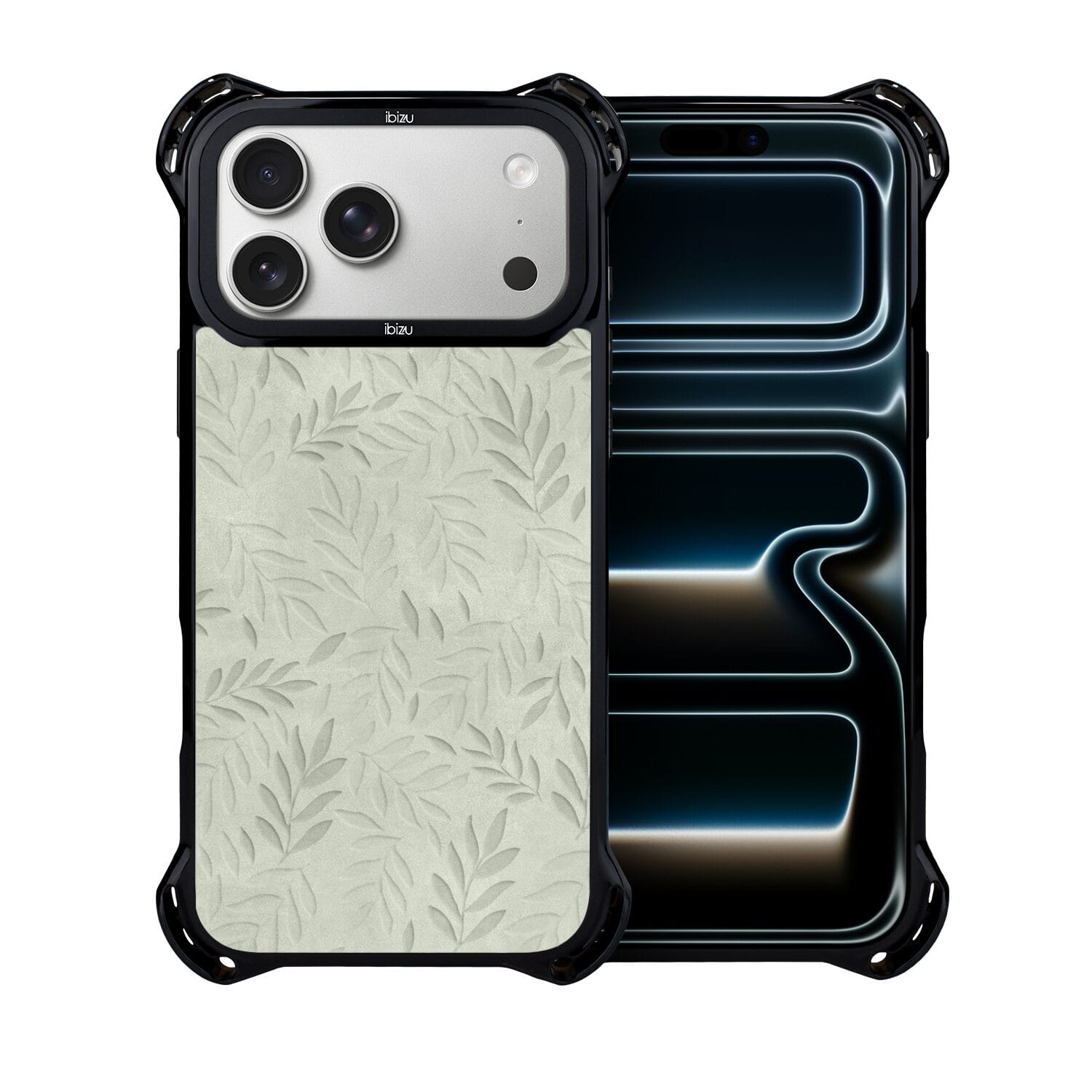 Etui do iPhone 17 Pro Max IBIZU DropGuard Ultra z MagSafe, Relief Garden, Ślad oliwki