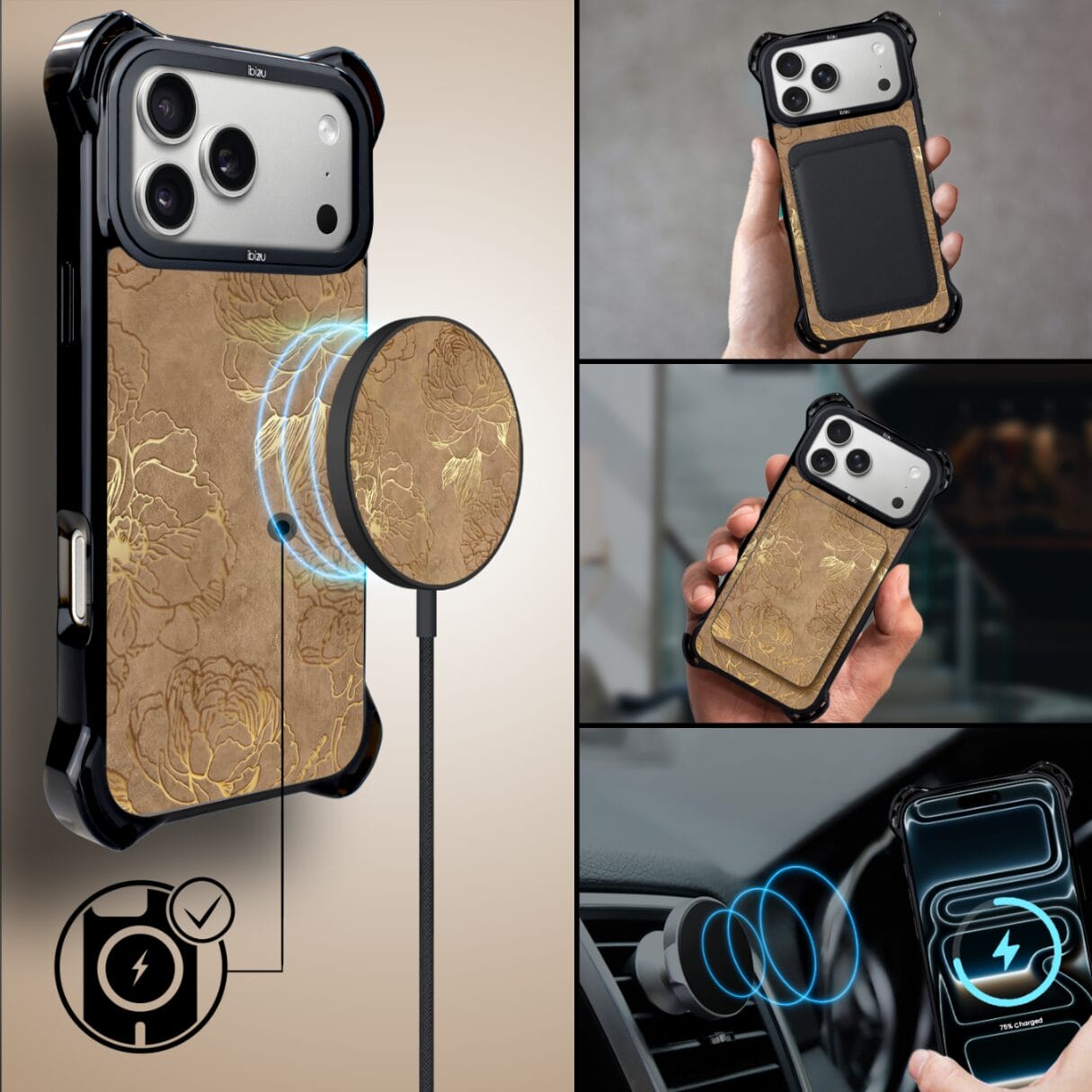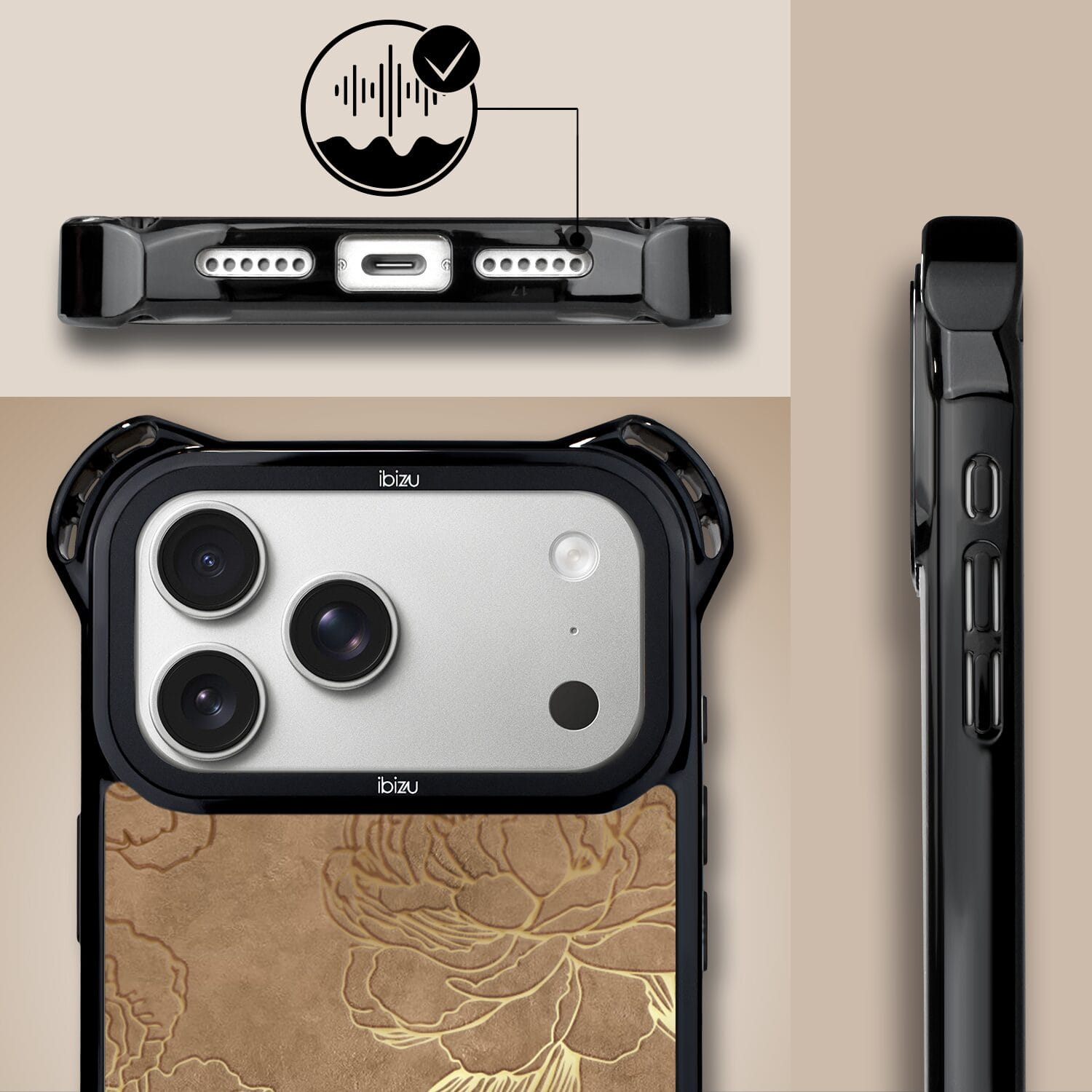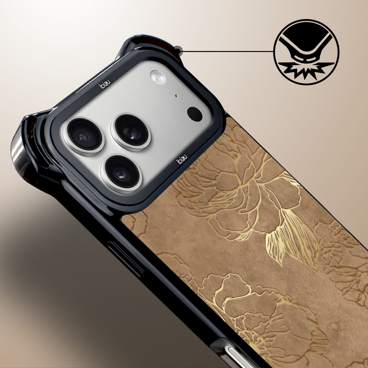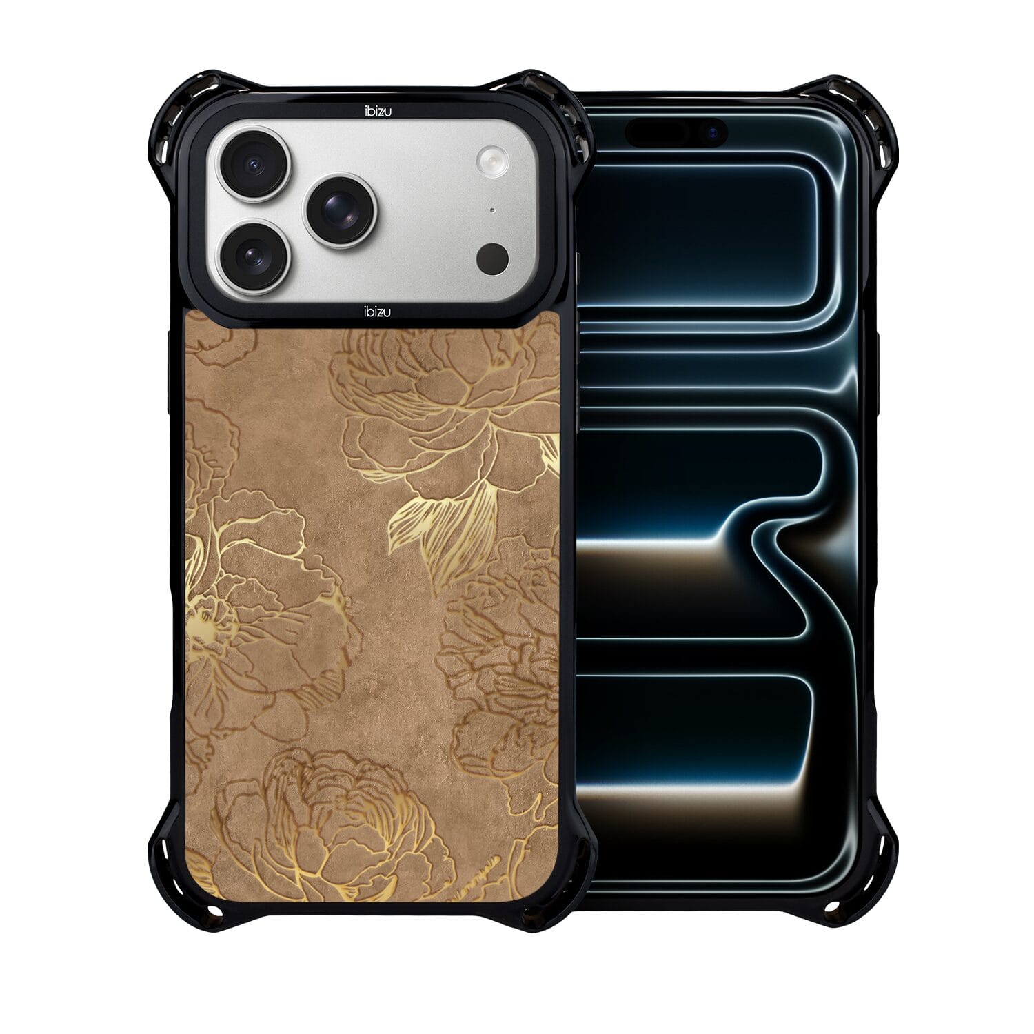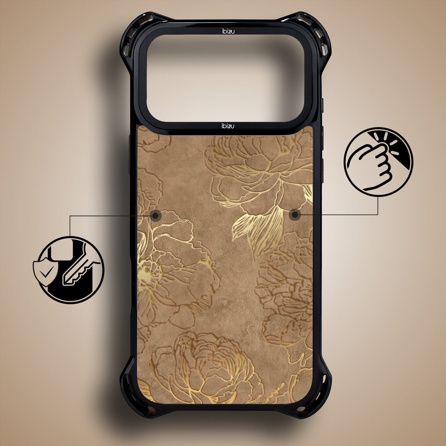 Etui do iPhone 17 Pro Max IBIZU DropGuard Ultra z MagSafe, Relief Garden, Złote piwonie