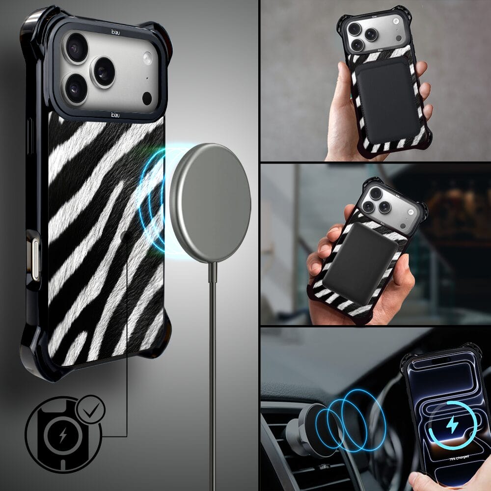 Etui do iPhone 17 Pro Max IBIZU DropGuard Ultra z MagSafe, Zew Natury, Zebra