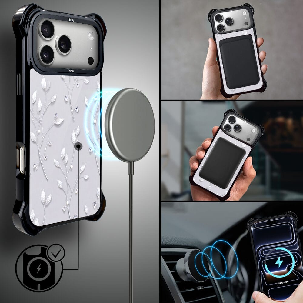 Etui do iPhone 17 Pro Max IBIZU DropGuard Ultra z MagSafe, Zimowa magia, Lodowe kwiaty