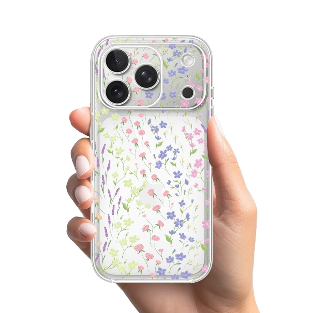 Etui do iPhone 17 Pro Max przeźroczyste, silikonowe Flexi, kwiaty polne