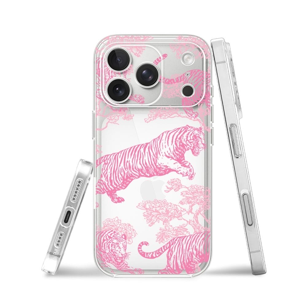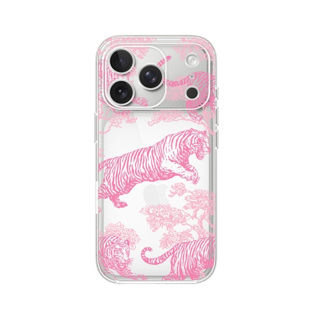 Etui do iPhone 17 Pro Max przeźroczyste, silikonowe Flexi, Mystic, Różowe tygrysy