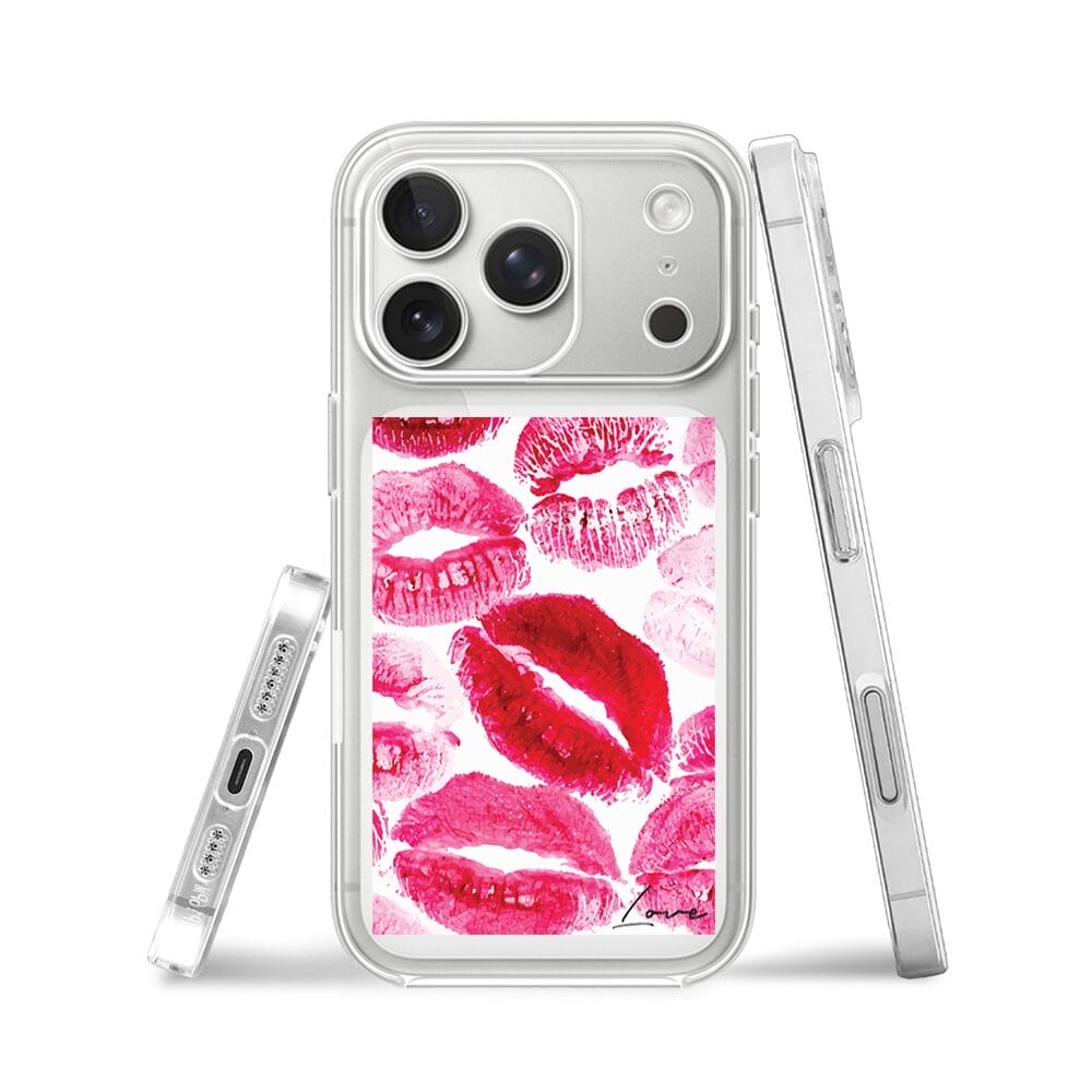 Etui do iPhone 17 Pro Max przeźroczyste, silikonowe Flexi, pocałunki z napisem „love”