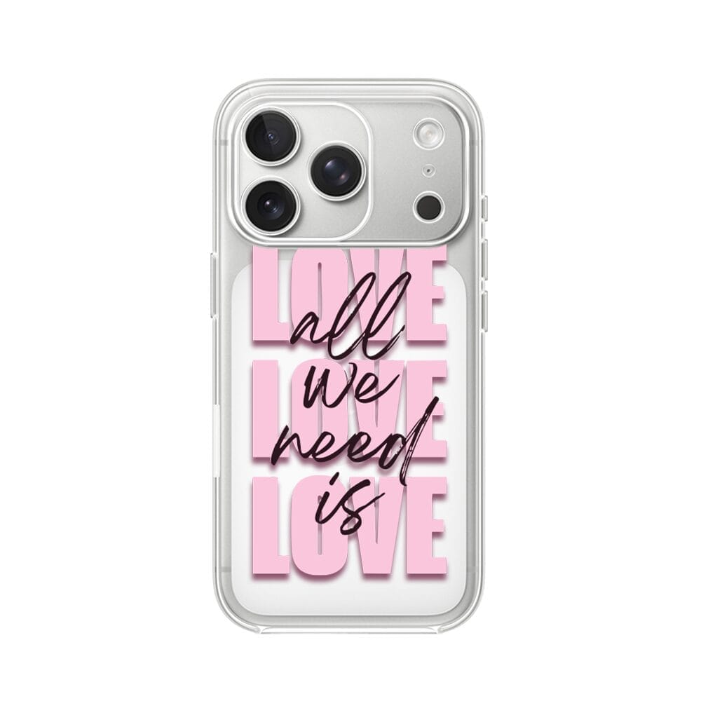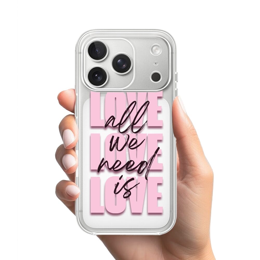 Etui do iPhone 17 Pro Max przeźroczyste, silikonowe Flexi, Positive Vibes, All We Need Is Love