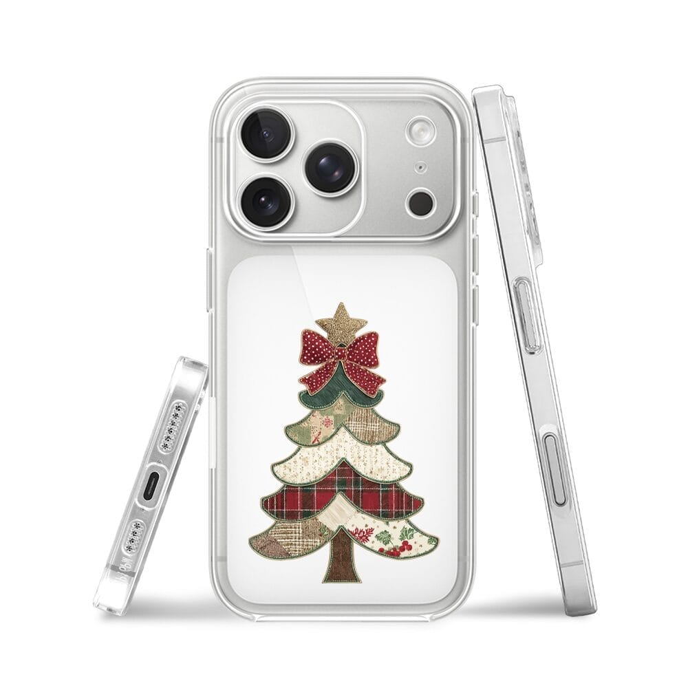 Etui do iPhone 17 Pro Max przeźroczyste, silikonowe Flexi, Przytulne święta, Kraciasta choinka