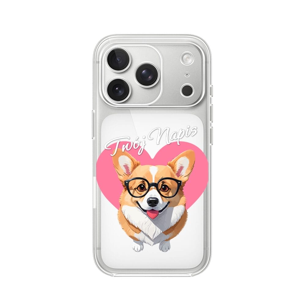 Etui do iPhone 17 Pro Max przeźroczyste, silikonowe Flexi, Puppy Love, pies rasy Corgi