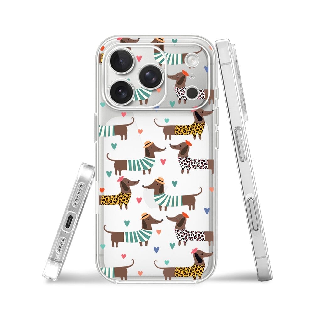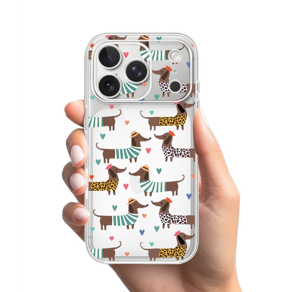 Etui do iPhone 17 Pro Max przeźroczyste, silikonowe Flexi, Summer Patterns, zakochane jamniki