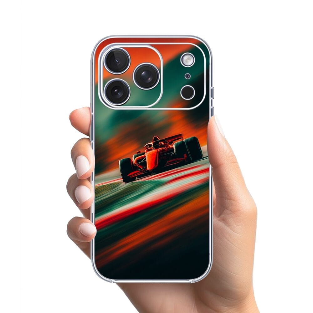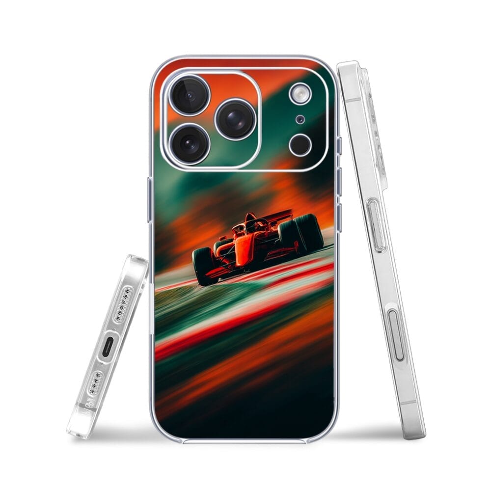 Etui do iPhone 17 Pro Max przeźroczyste, silikonowe Flexi, Szybkie Auta, Wyścig F1