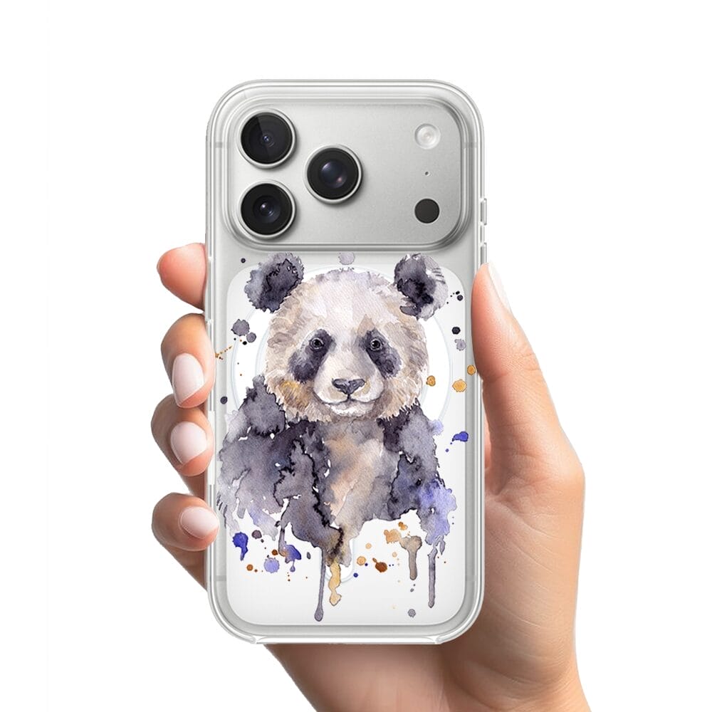 Etui do iPhone 17 Pro Max z MagSafe przeźroczyste, silikonowe Flexi, Akwarelowe Zoo, Panda