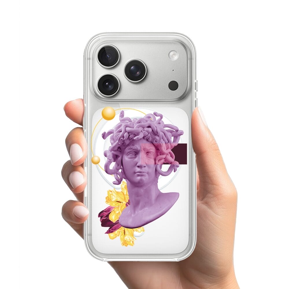 Etui do iPhone 17 Pro Max z MagSafe przeźroczyste, silikonowe Flexi, antyczna figura