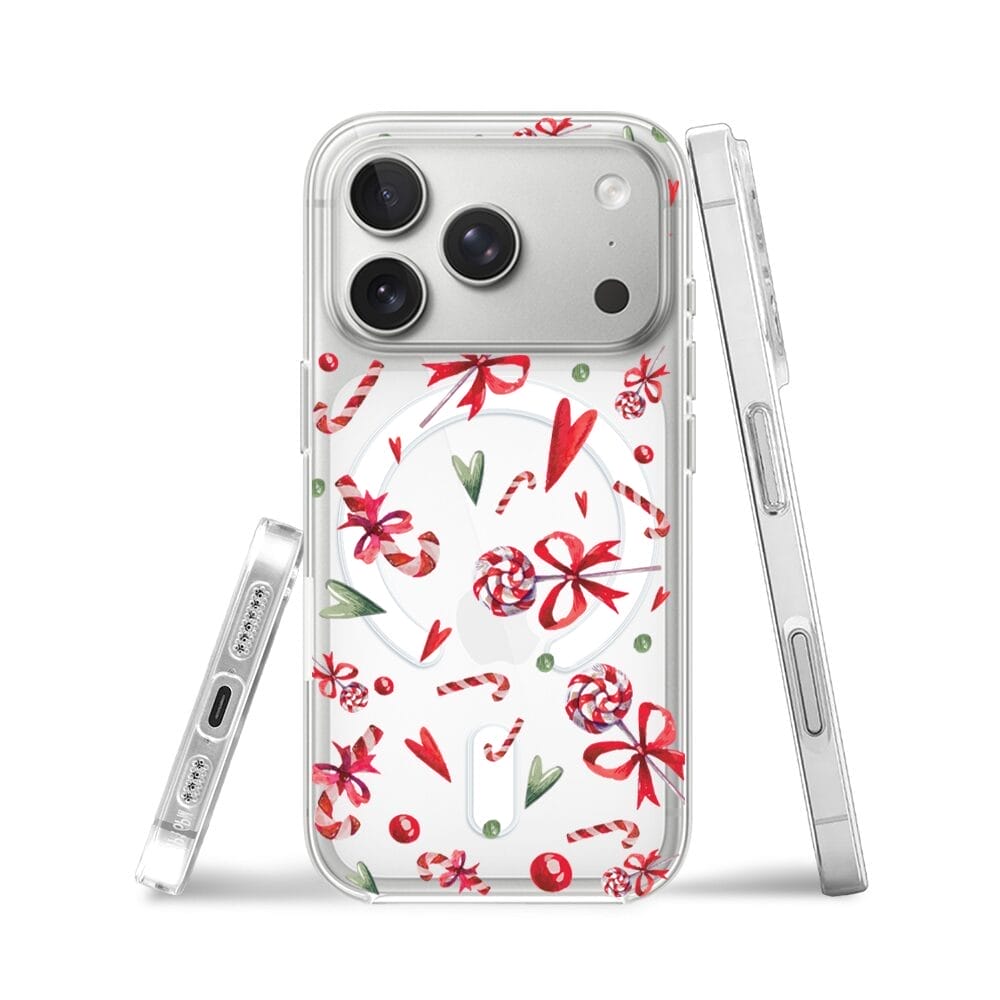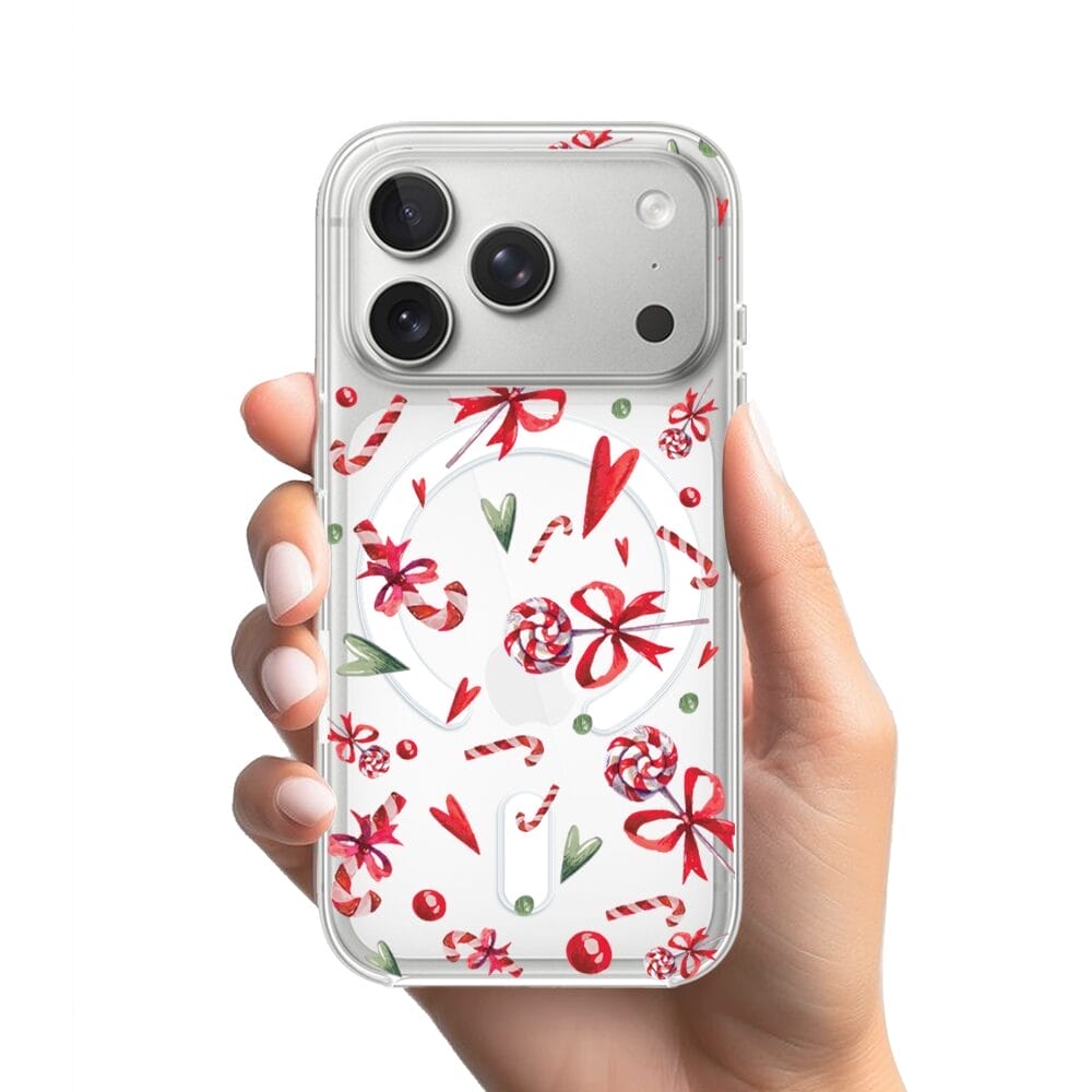 Etui do iPhone 17 Pro Max z MagSafe przeźroczyste, silikonowe Flexi, Cukierki świąteczne