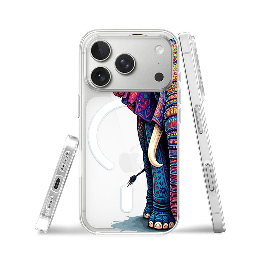 Etui do iPhone 17 Pro Max z MagSafe przeźroczyste, silikonowe Flexi, Dzika Mandala, Słoń