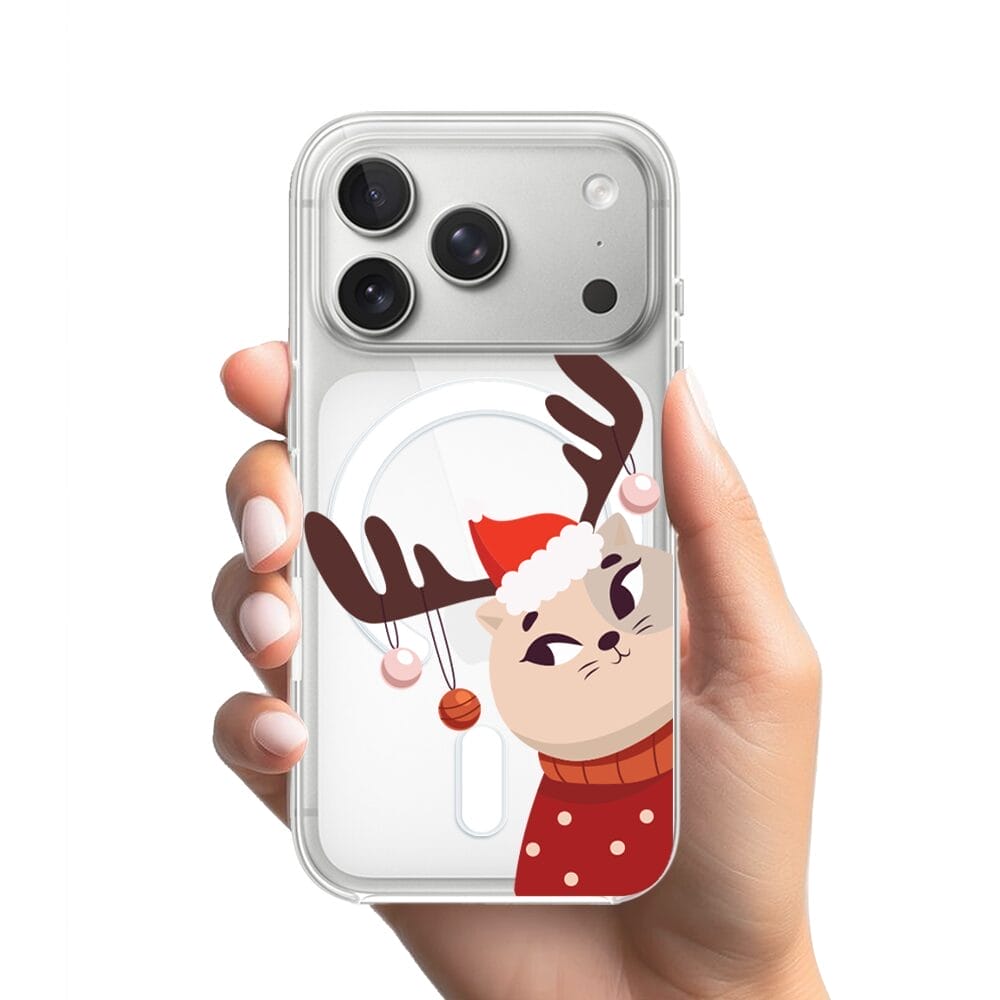 Etui do iPhone 17 Pro Max z MagSafe przeźroczyste, silikonowe Flexi, Kotek przebrany za reniferka