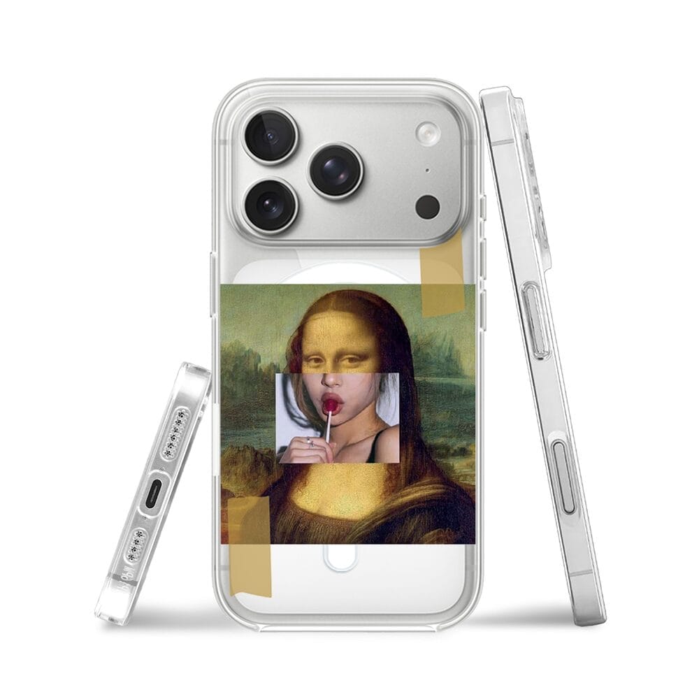 Etui do iPhone 17 Pro Max z MagSafe przeźroczyste, silikonowe Flexi, Mona lisa z lizakiem