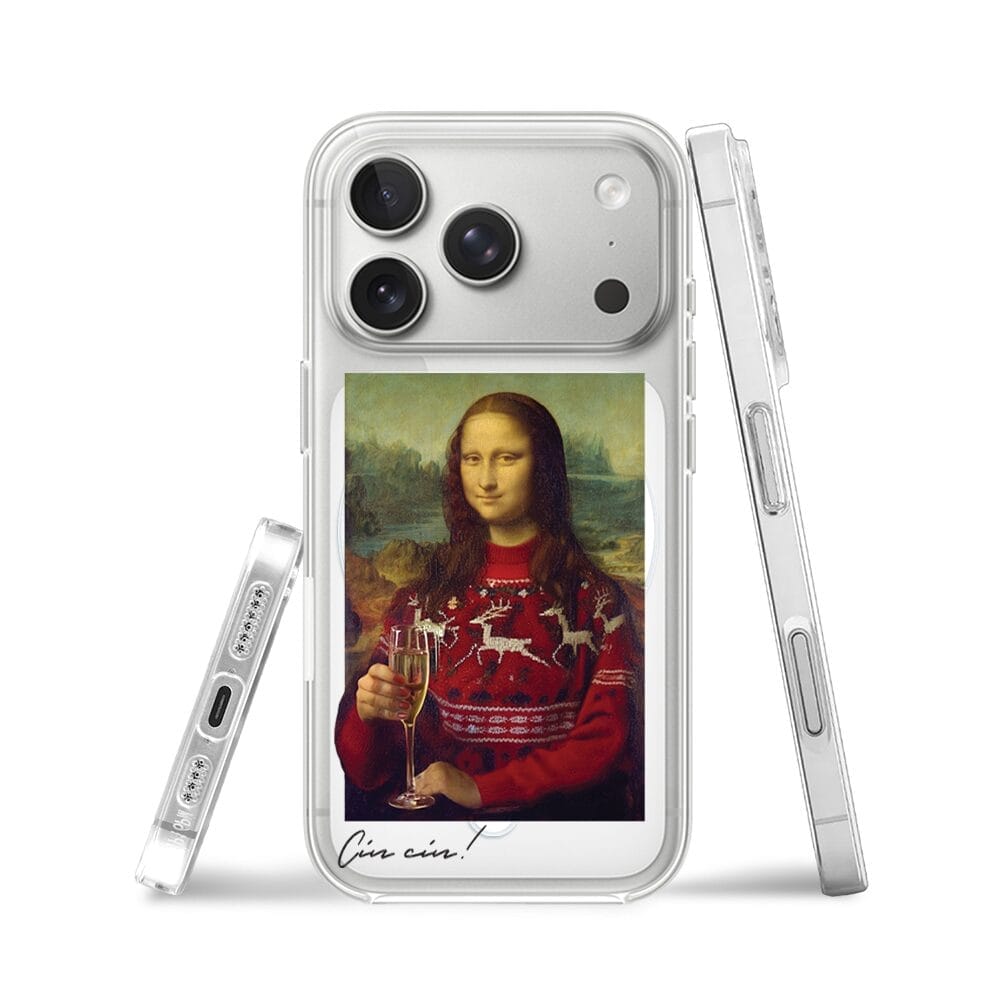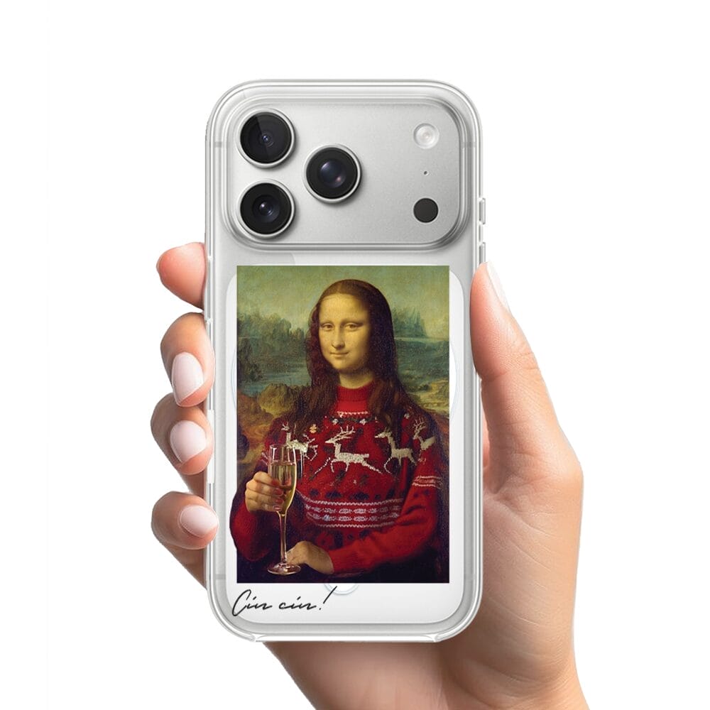 Etui do iPhone 17 Pro Max z MagSafe przeźroczyste, silikonowe Flexi, Mona Lisa z szampanem
