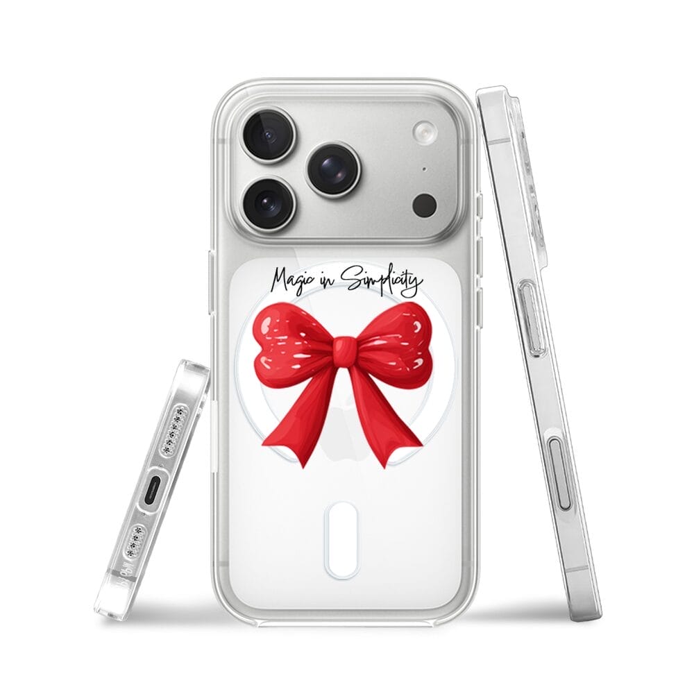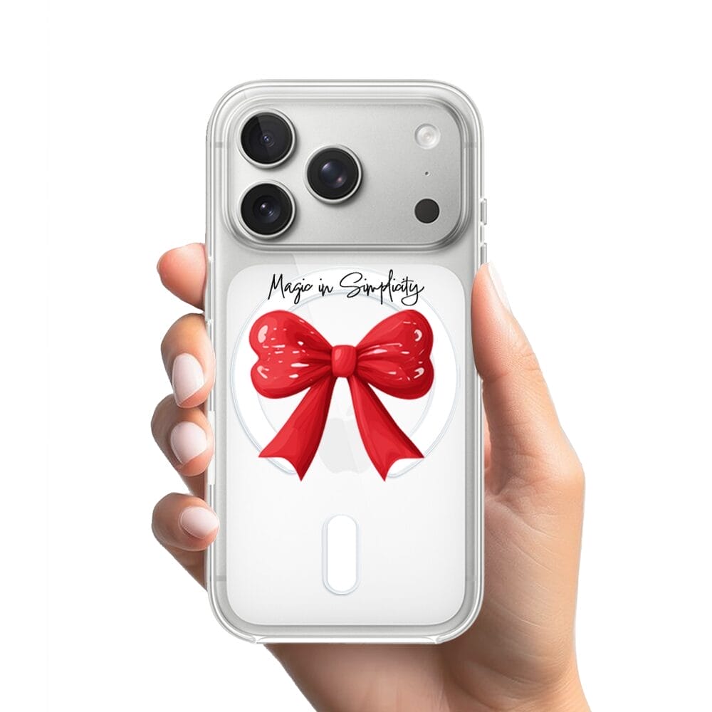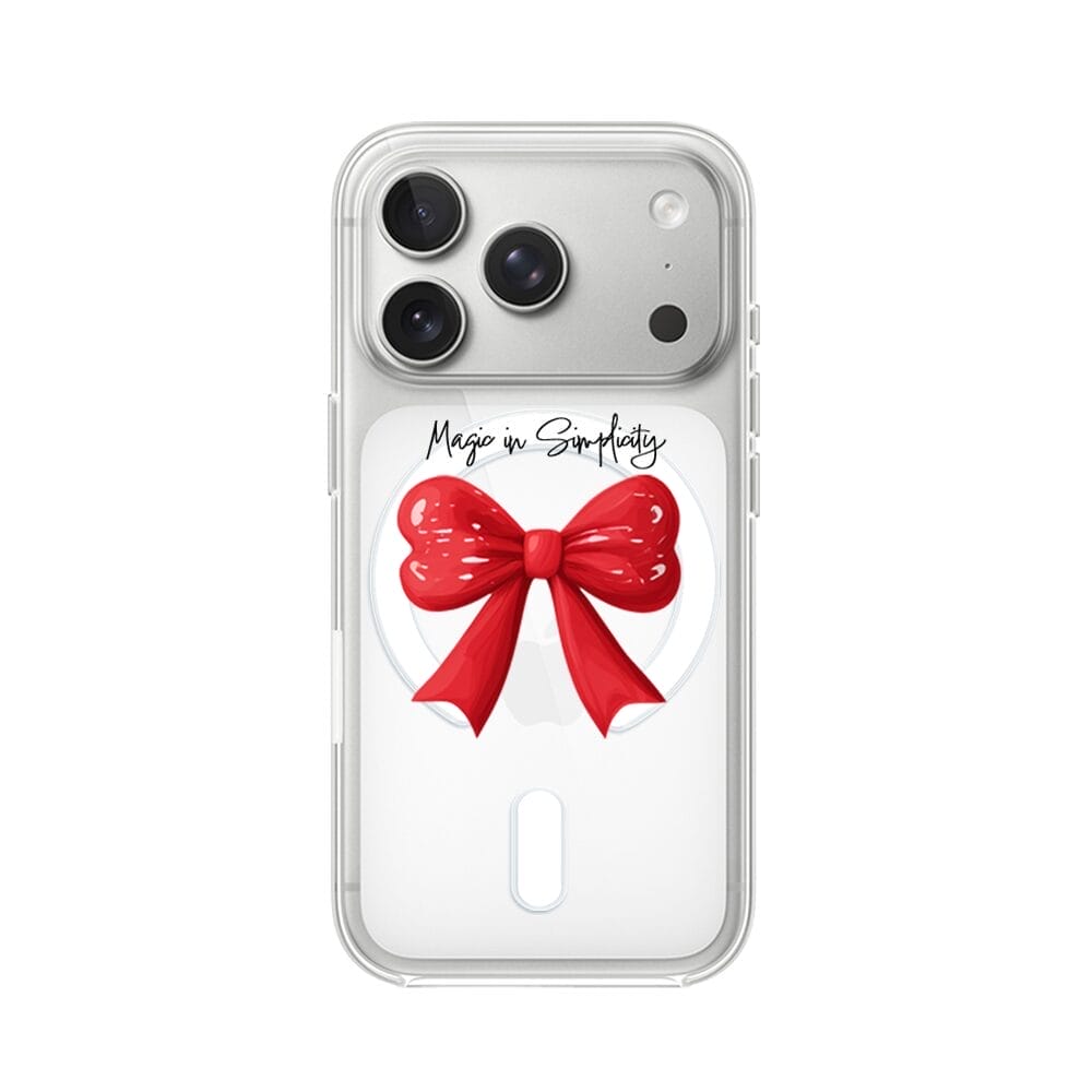 Etui do iPhone 17 Pro Max z MagSafe przeźroczyste, silikonowe Flexi, Przytulne święta, Czerwona kokarda