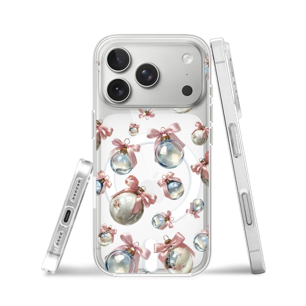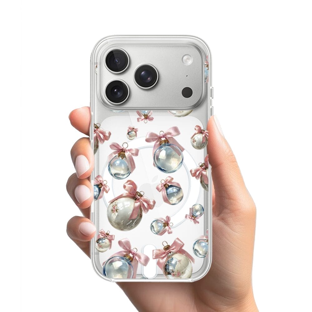 Etui do iPhone 17 Pro Max z MagSafe przeźroczyste, silikonowe Flexi, Przytulne święta, Pastelowe bombki