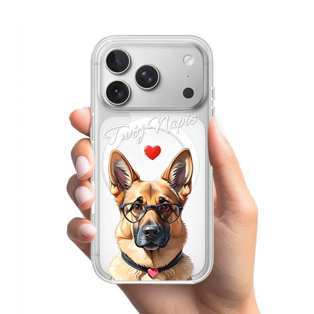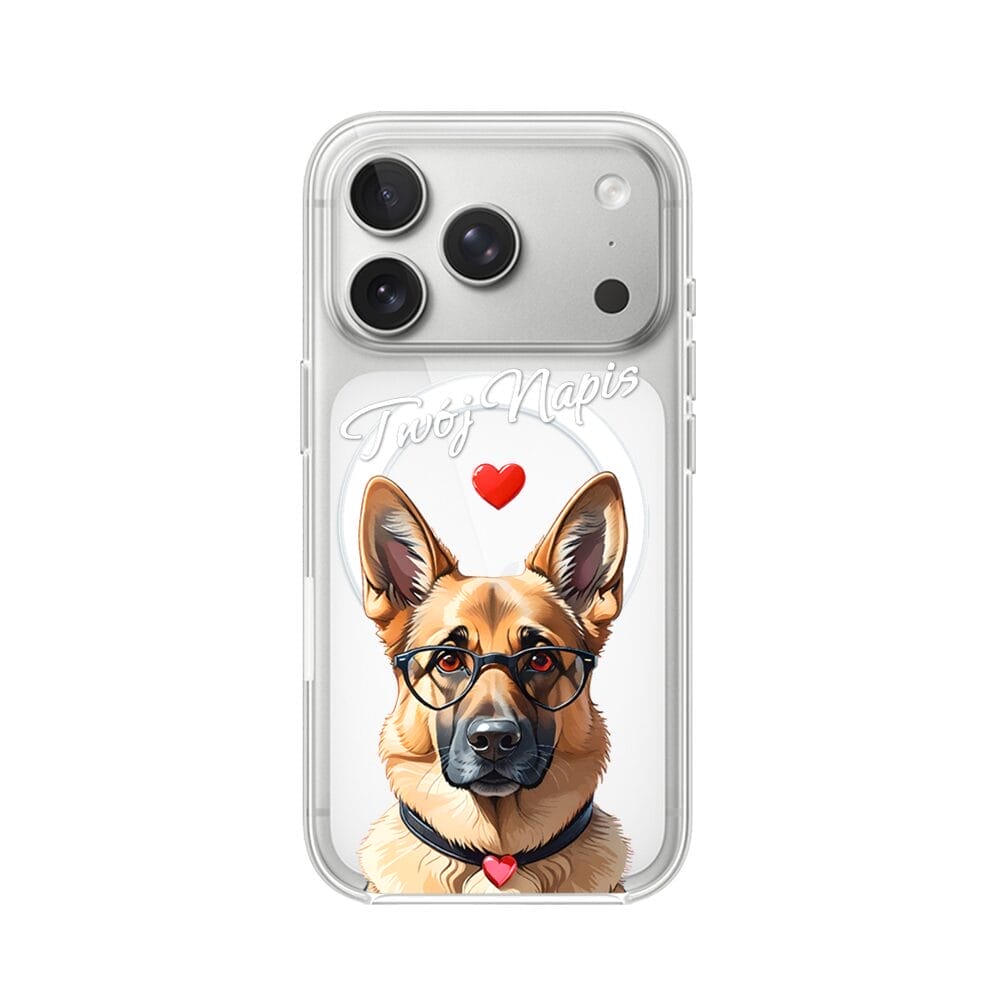 Etui do iPhone 17 Pro Max z MagSafe przeźroczyste, silikonowe Flexi, Puppy Love, pies rasy Owczarek Niemiecki