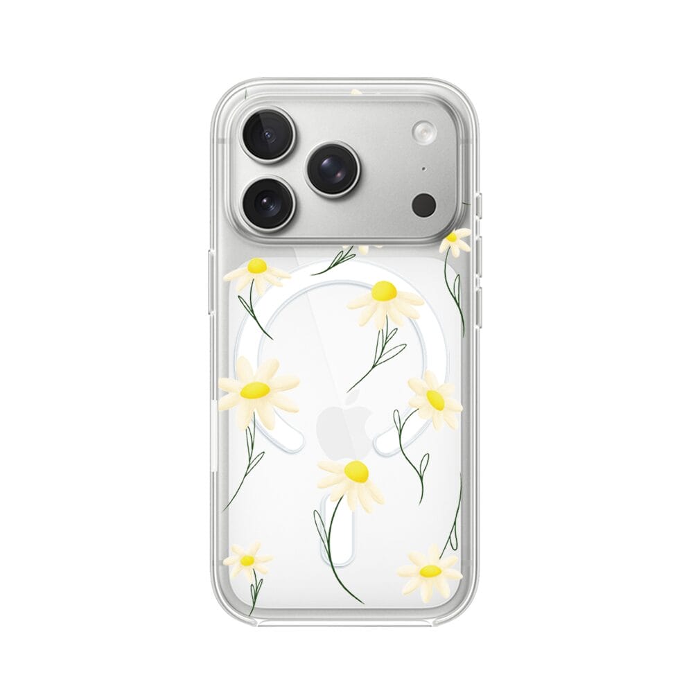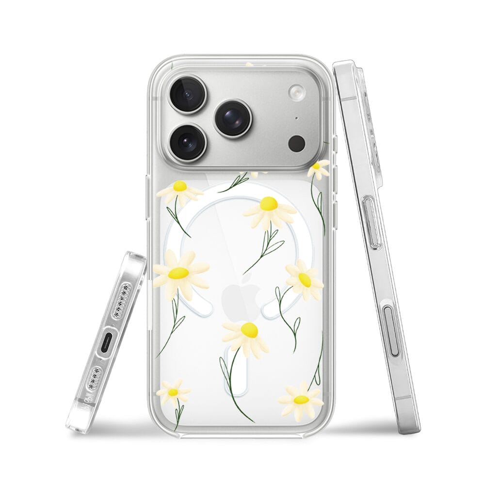 Etui do iPhone 17 Pro Max z MagSafe przeźroczyste, silikonowe Flexi, stokrotki