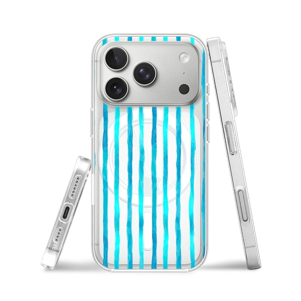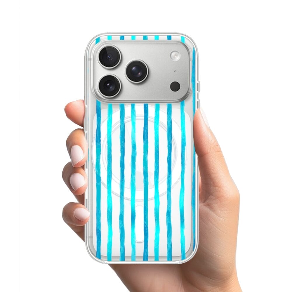 Etui do iPhone 17 Pro Max z MagSafe przeźroczyste, silikonowe Flexi, Summer Patterns, błękitne paski