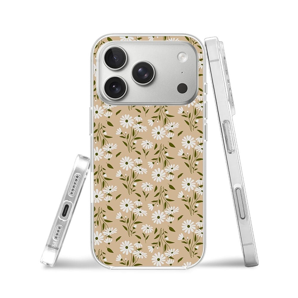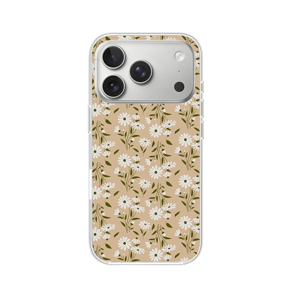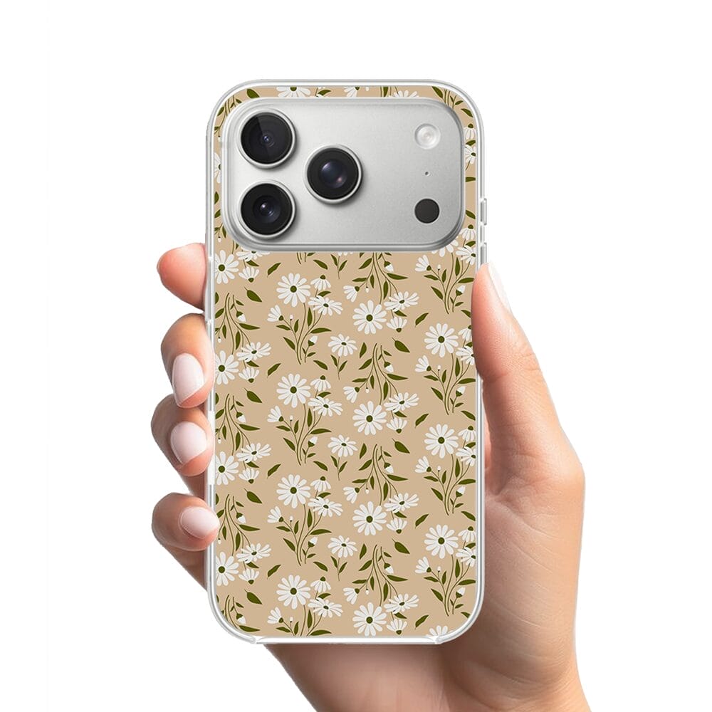 Etui do iPhone 17 Pro Max z MagSafe przeźroczyste, silikonowe Flexi, Summer Patterns, delikatne kwiatki na cielistym tle