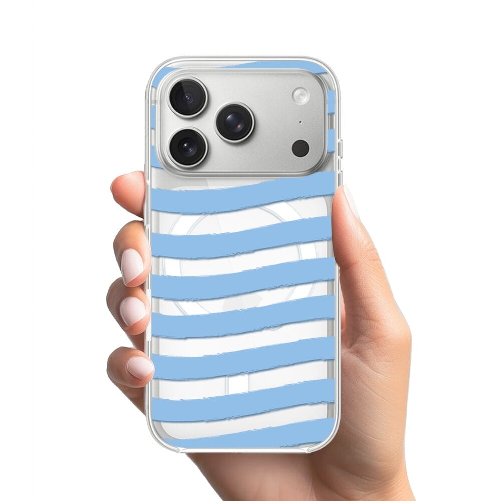 Etui do iPhone 17 Pro Max z MagSafe przeźroczyste, silikonowe Flexi, Summer Patterns, niebieskie paski