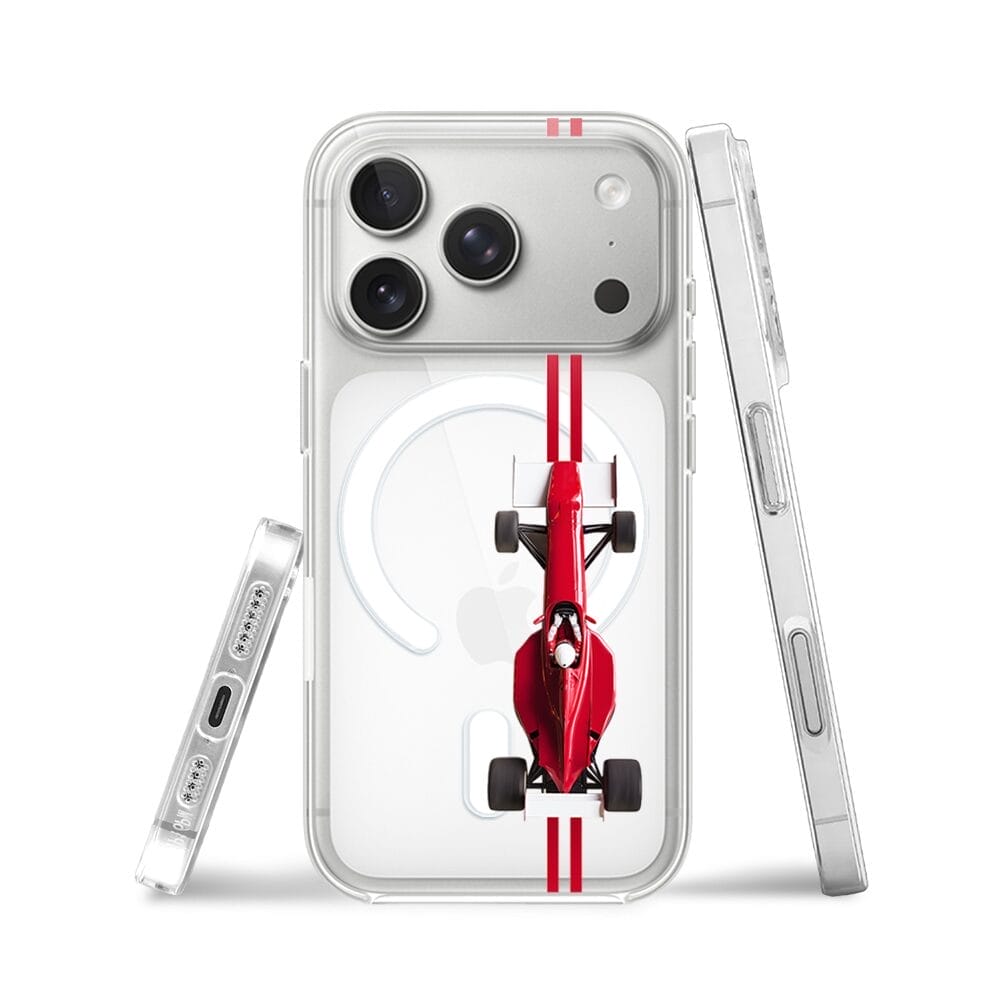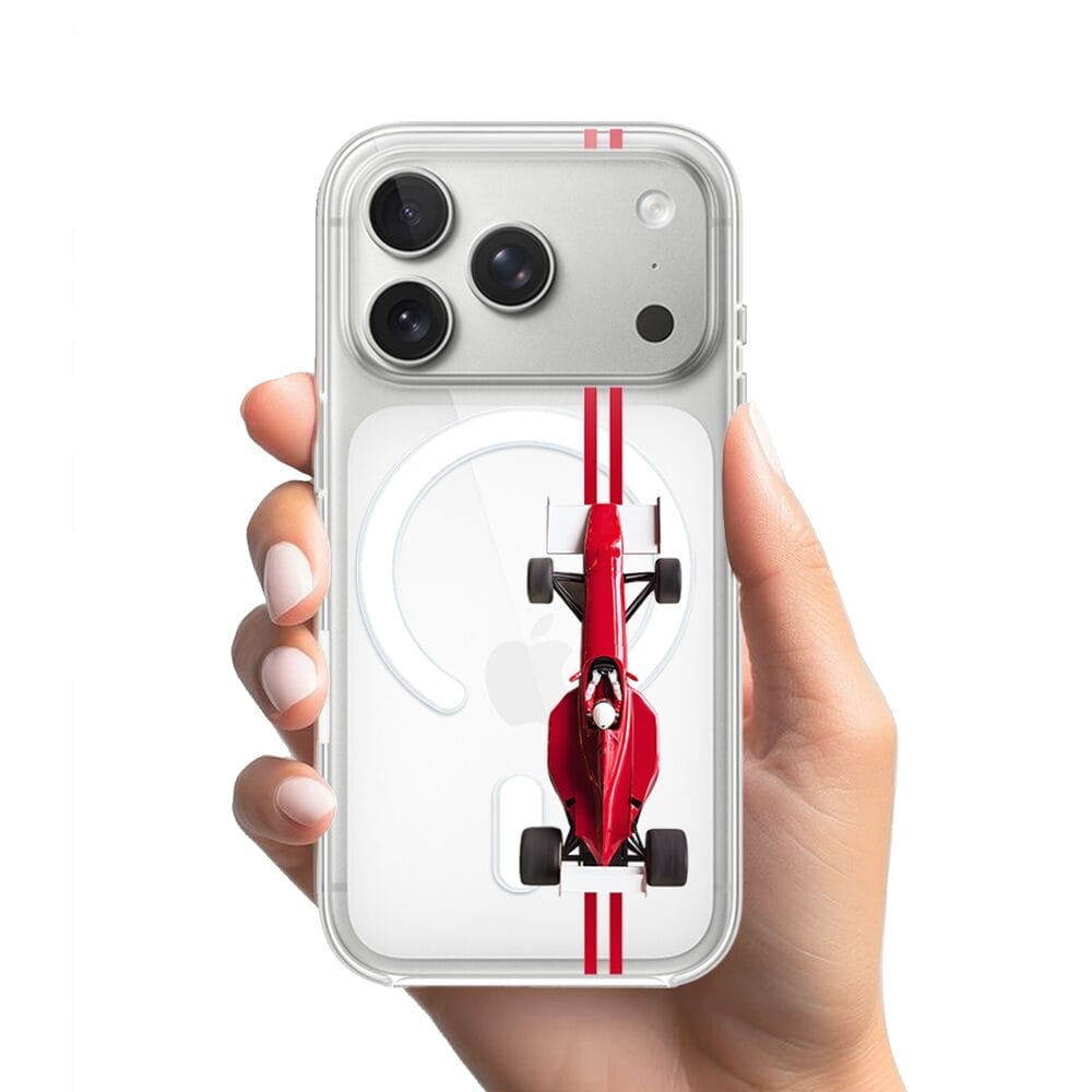 Etui do iPhone 17 Pro Max z MagSafe przeźroczyste, silikonowe Flexi, Szybkie Auta, czerwone F1