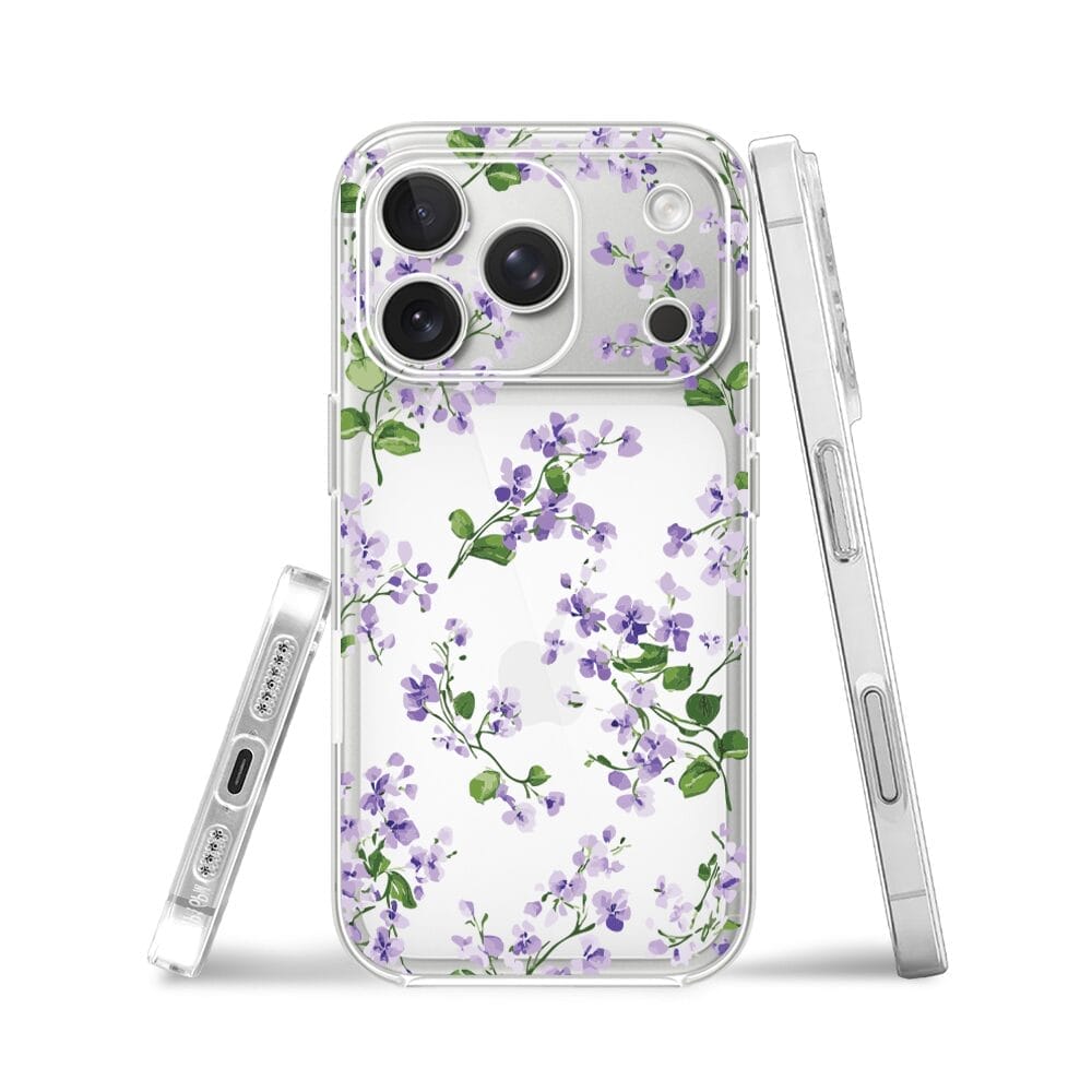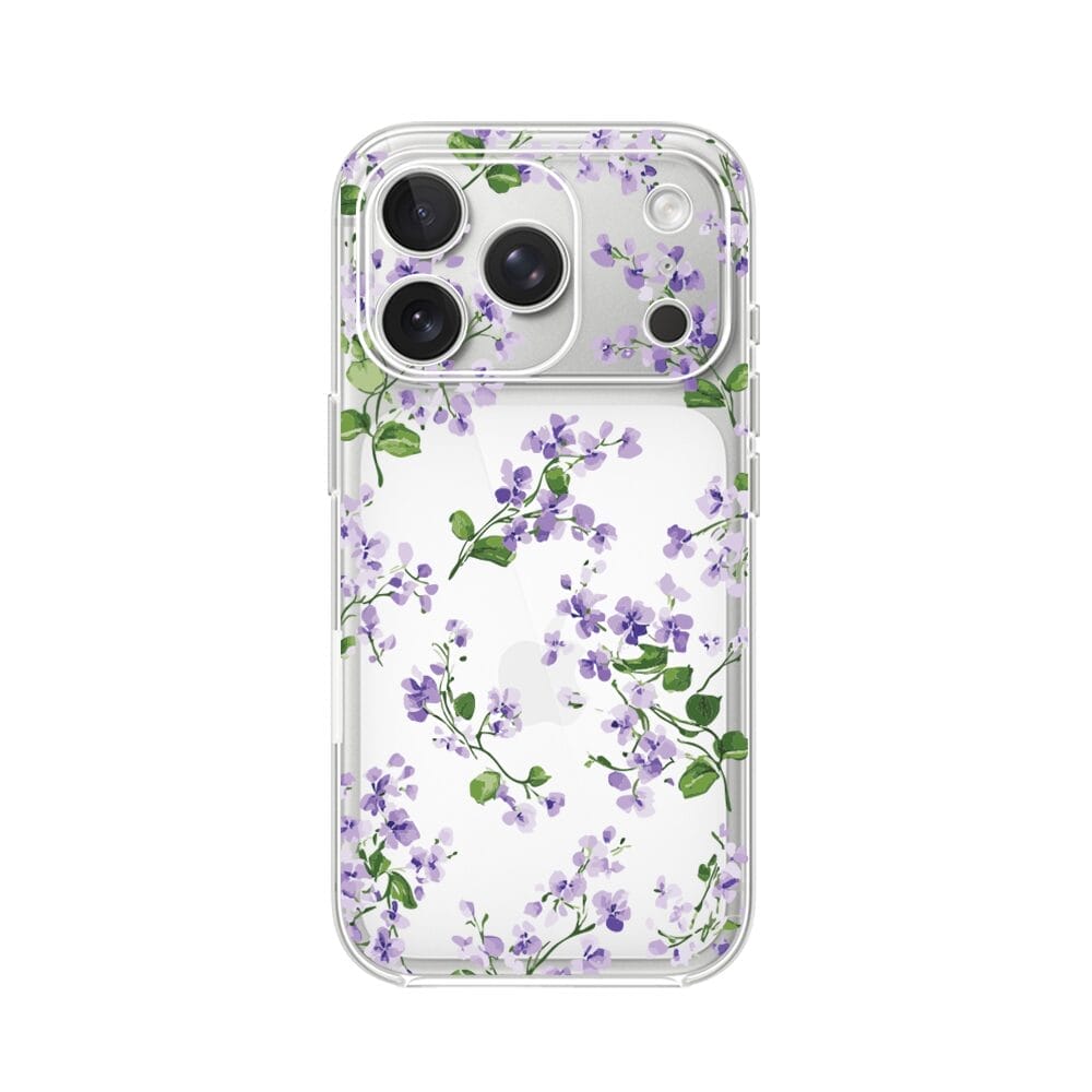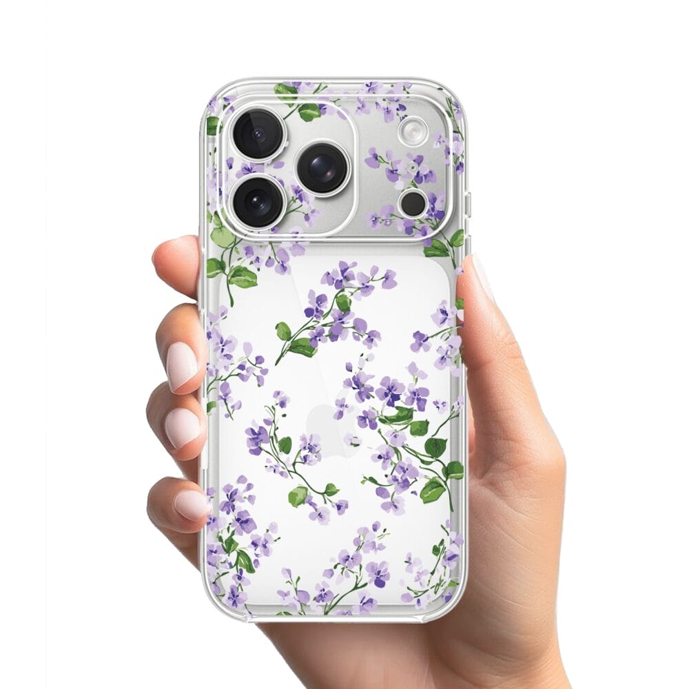 Etui do iPhone 17 Pro przeźroczyste, silikonowe Flexi, Fioletowe Bratki