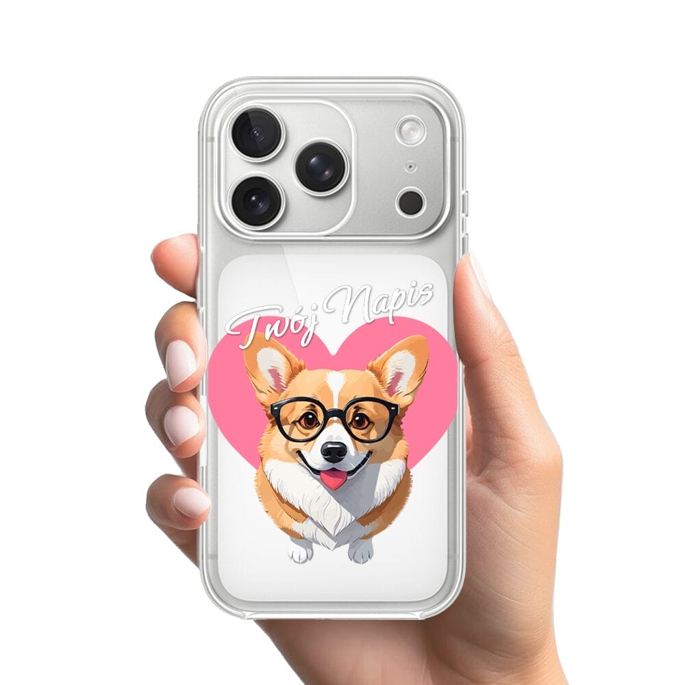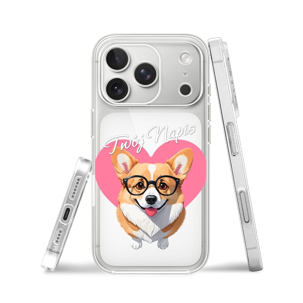 Etui do iPhone 17 Pro przeźroczyste, silikonowe Flexi, Puppy Love, pies rasy Corgi