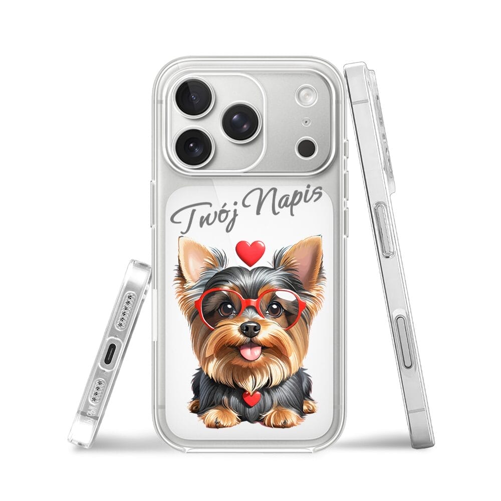 Etui do iPhone 17 Pro przeźroczyste, silikonowe Flexi, Puppy Love, pies rasy York