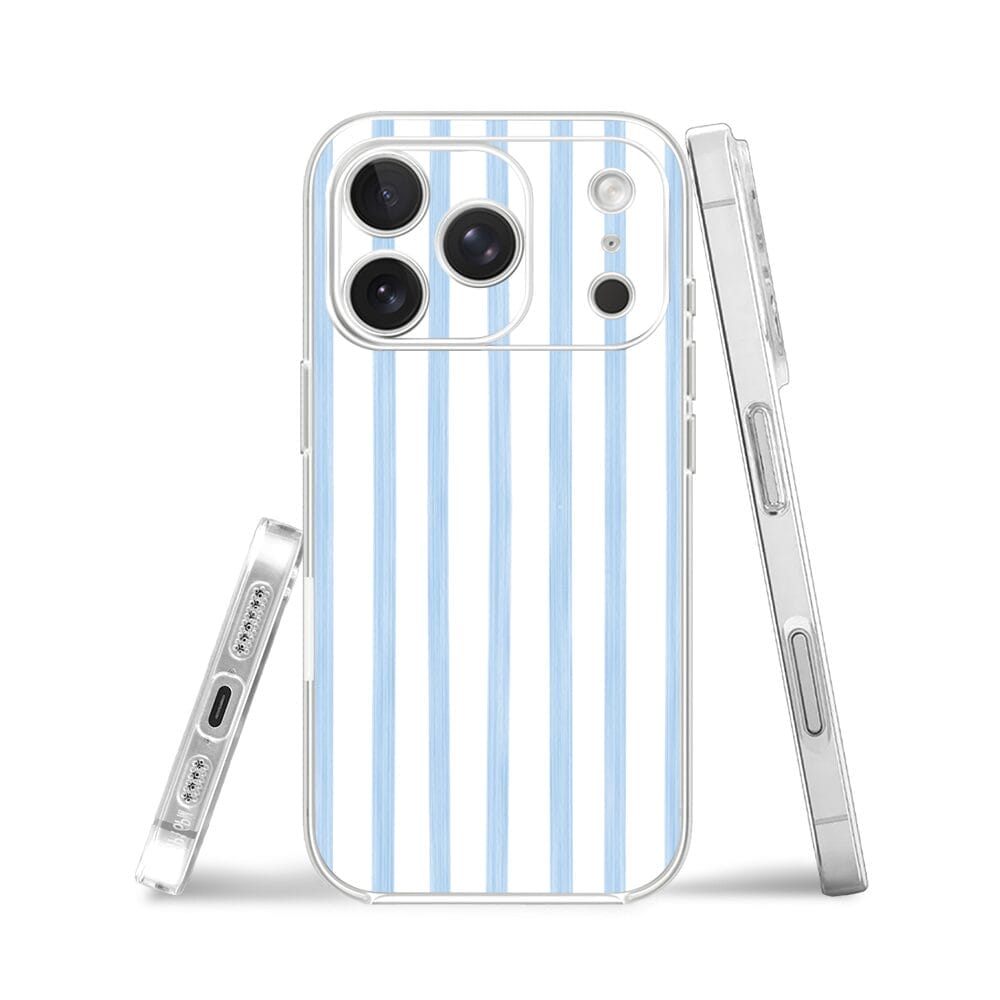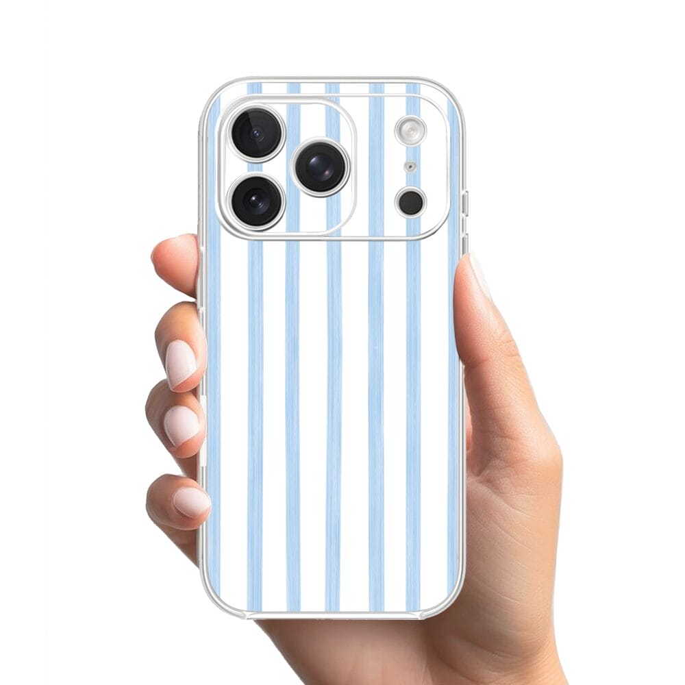 Etui do iPhone 17 Pro przeźroczyste, silikonowe Flexi, Summer Patterns, biało-niebieskie paski