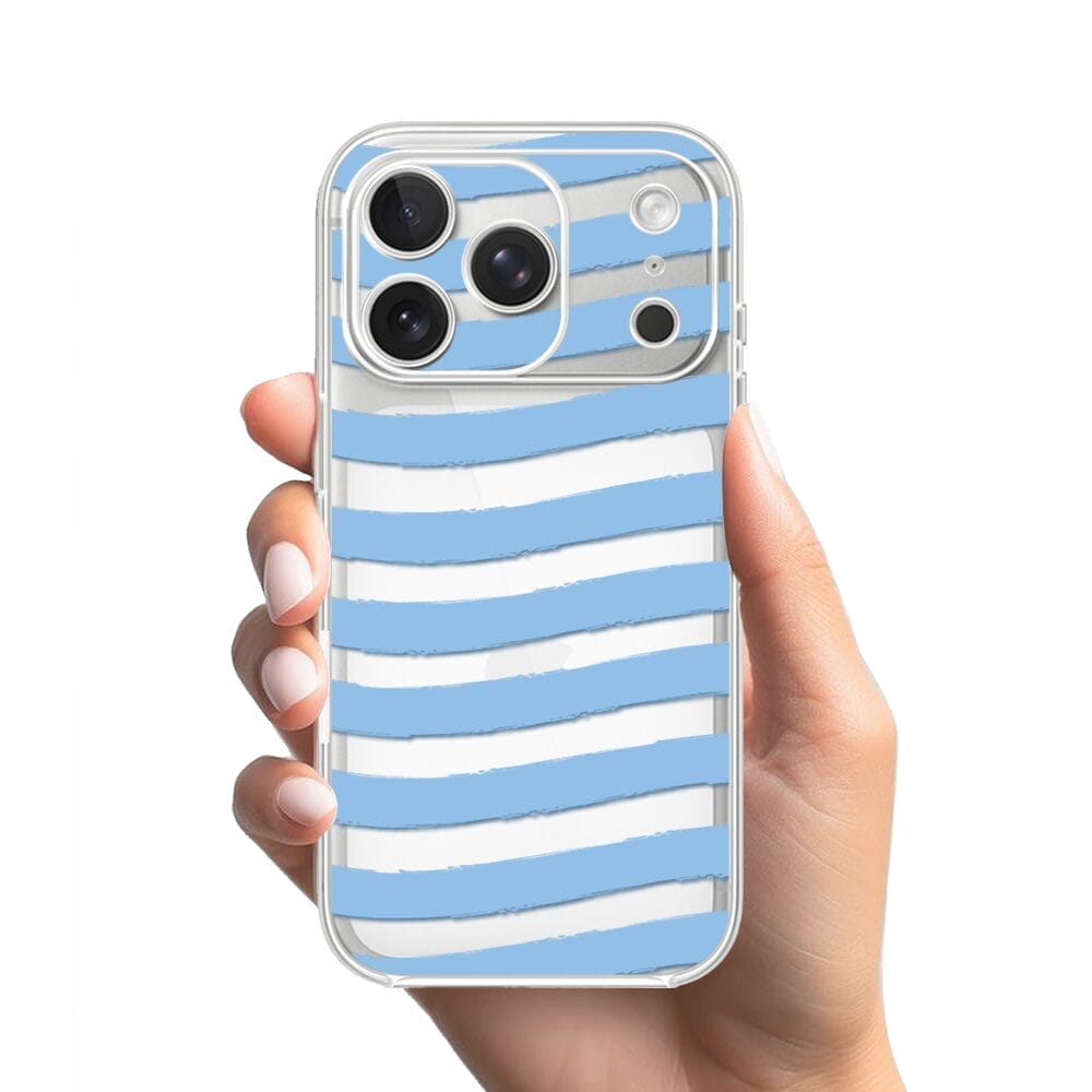 Etui do iPhone 17 Pro przeźroczyste, silikonowe Flexi, Summer Patterns, niebieskie paski