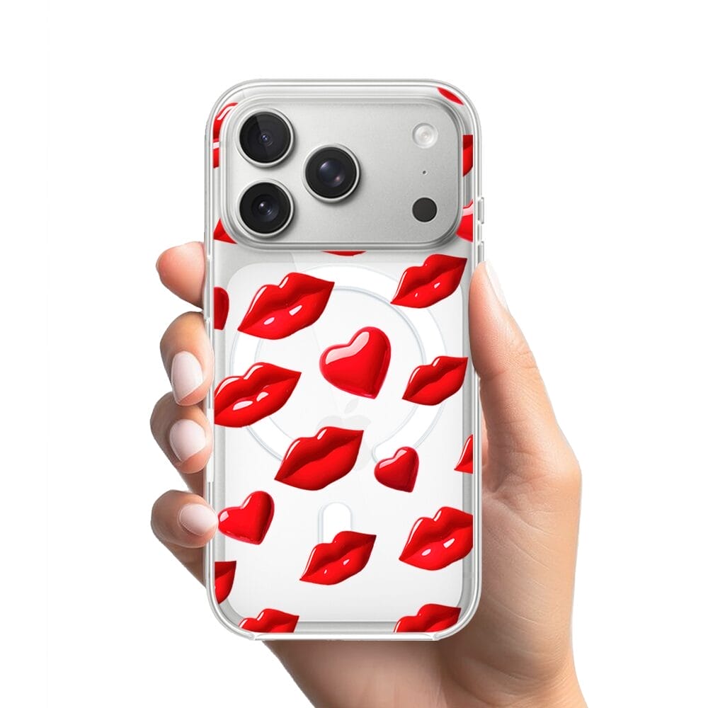 Etui do iPhone 17 Pro z MagSafe przeźroczyste, silikonowe Flexi, czerwone usta