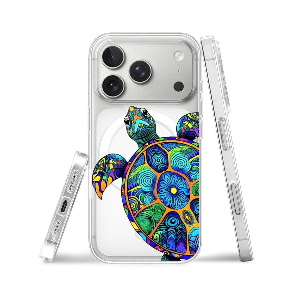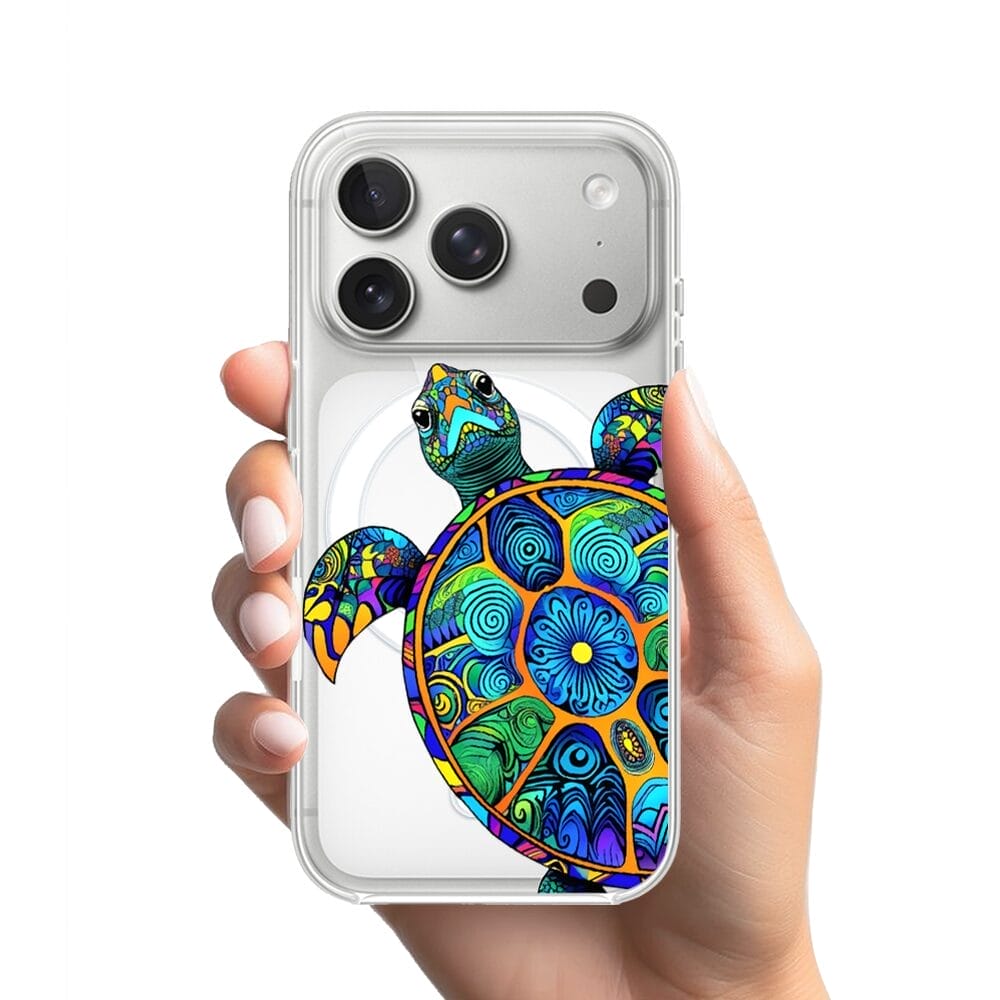 Etui do iPhone 17 Pro z MagSafe przeźroczyste, silikonowe Flexi, Dzika Mandala, Żółw