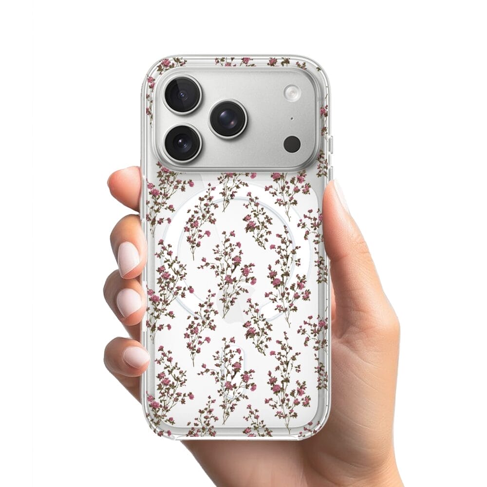 Etui do iPhone 17 Pro z MagSafe przeźroczyste, silikonowe Flexi, Mini Patterns, Różyczki