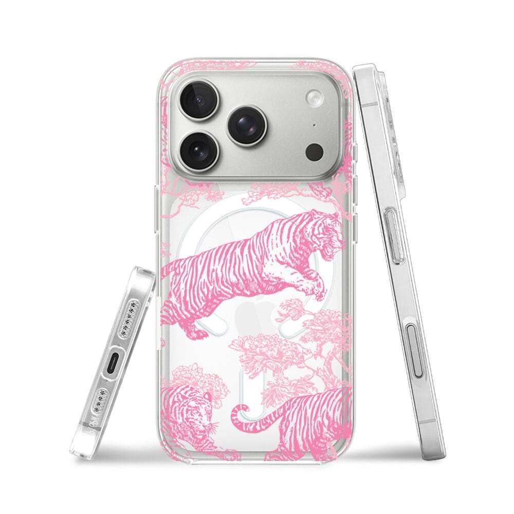 Etui do iPhone 17 Pro z MagSafe przeźroczyste, silikonowe Flexi, Mystic, Różowe tygrysy