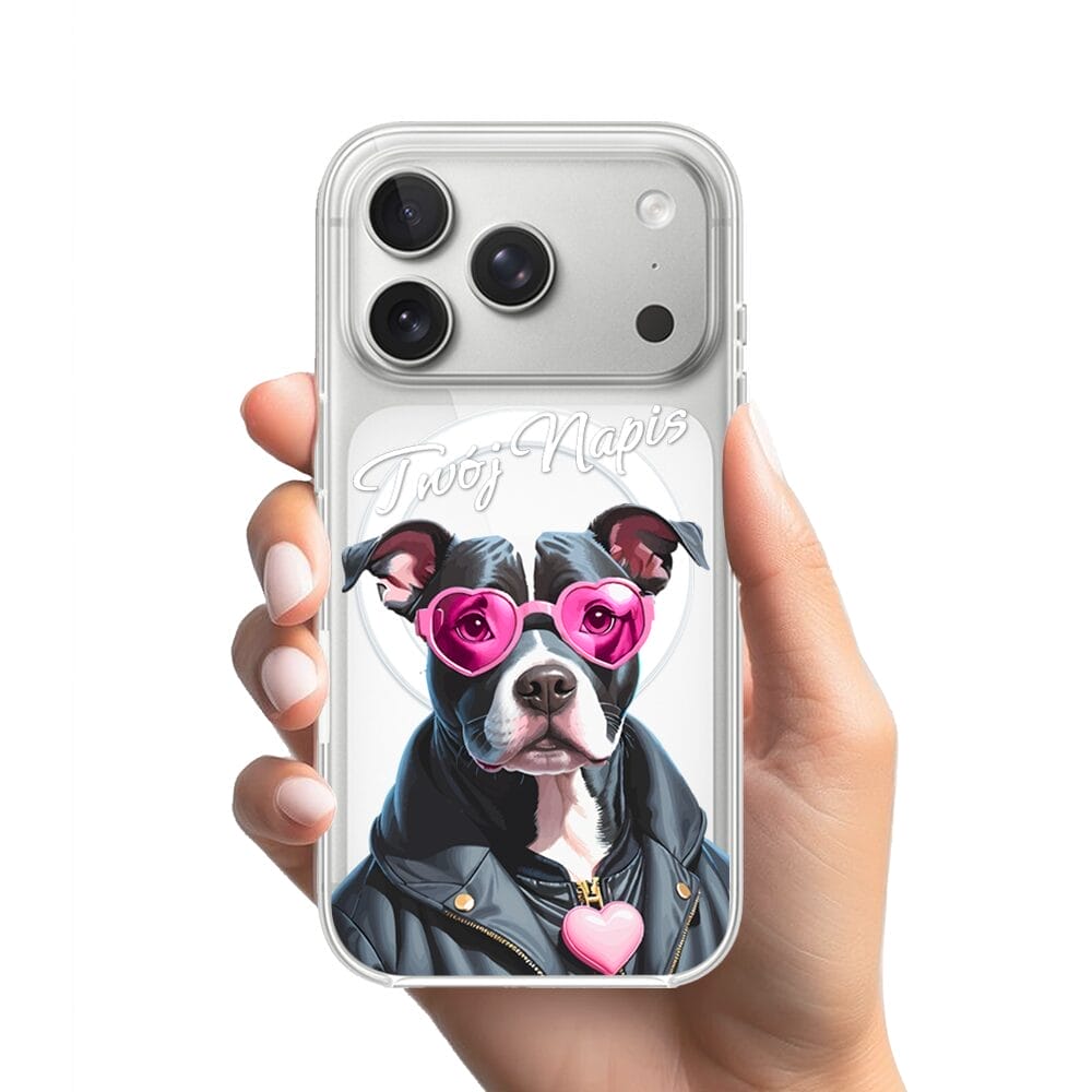 Etui do iPhone 17 Pro z MagSafe przeźroczyste, silikonowe Flexi, Puppy Love, pies rasy Amstaff