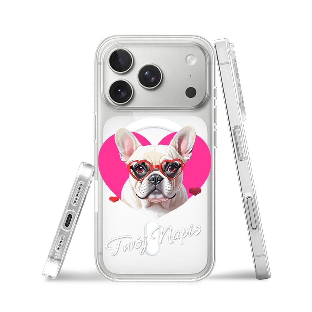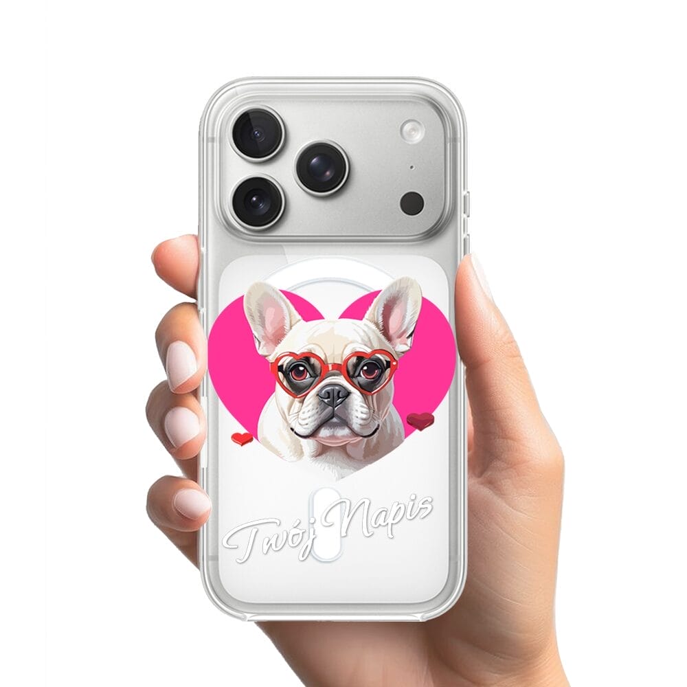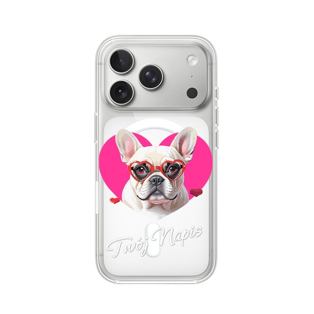 Etui do iPhone 17 Pro z MagSafe przeźroczyste, silikonowe Flexi, Puppy Love, pies rasy Buldog Francuski