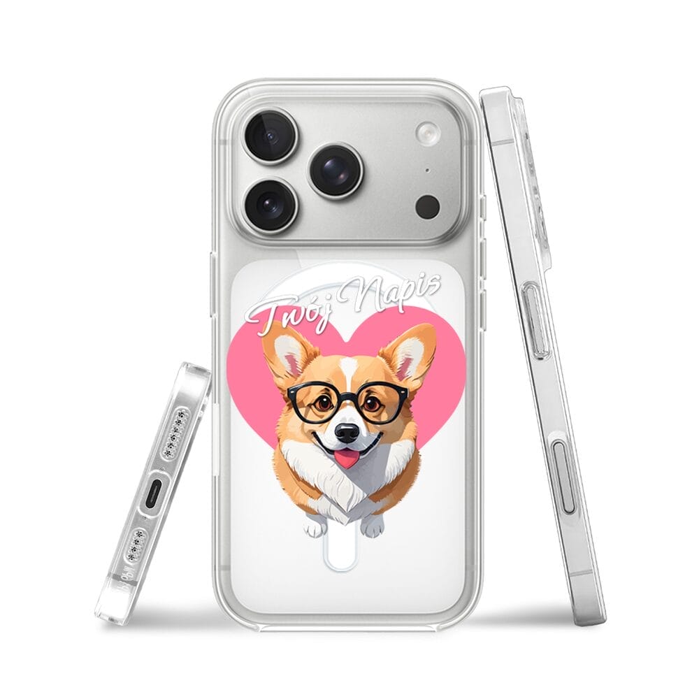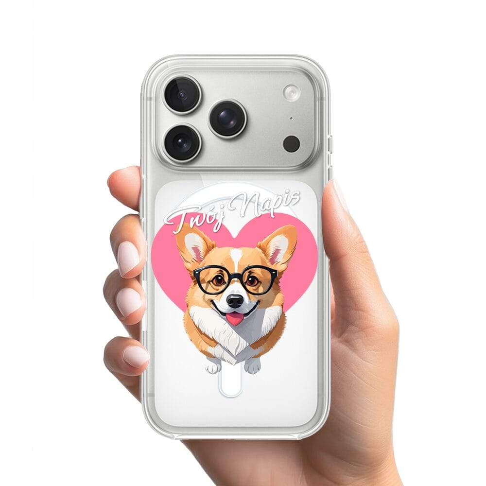 Etui do iPhone 17 Pro z MagSafe przeźroczyste, silikonowe Flexi, Puppy Love, pies rasy Corgi