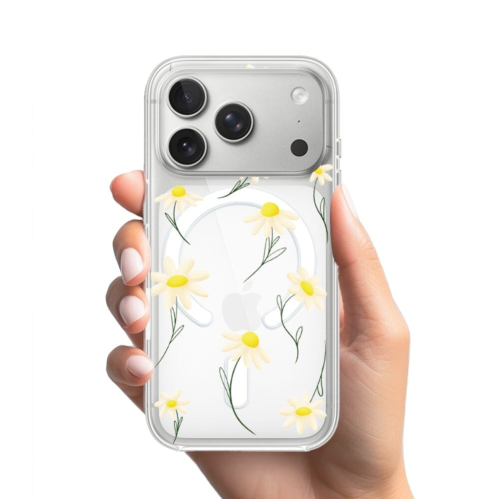 Etui do iPhone 17 Pro z MagSafe przeźroczyste, silikonowe Flexi, stokrotki